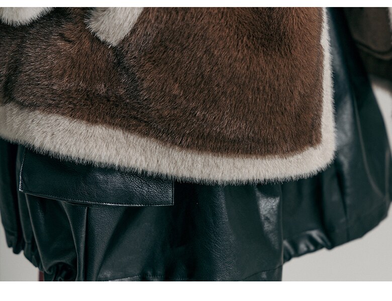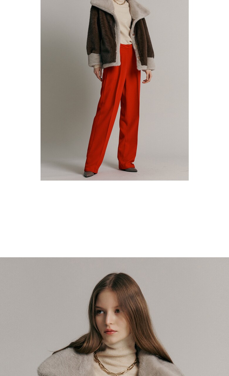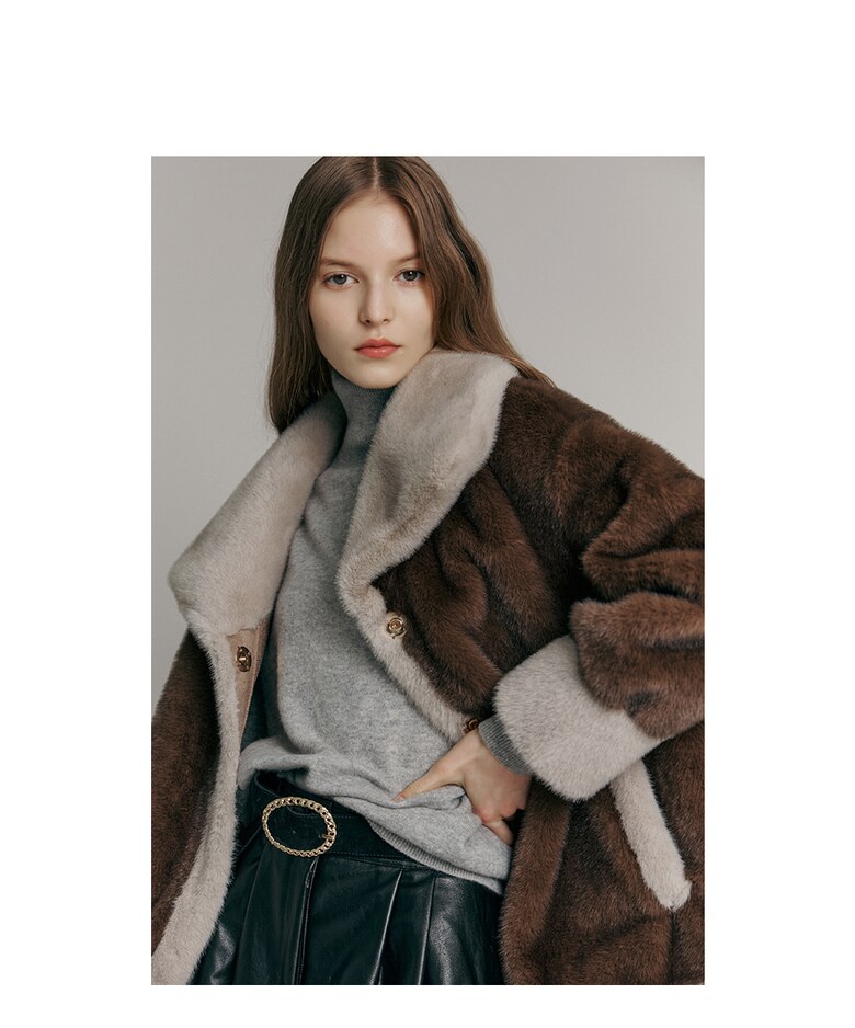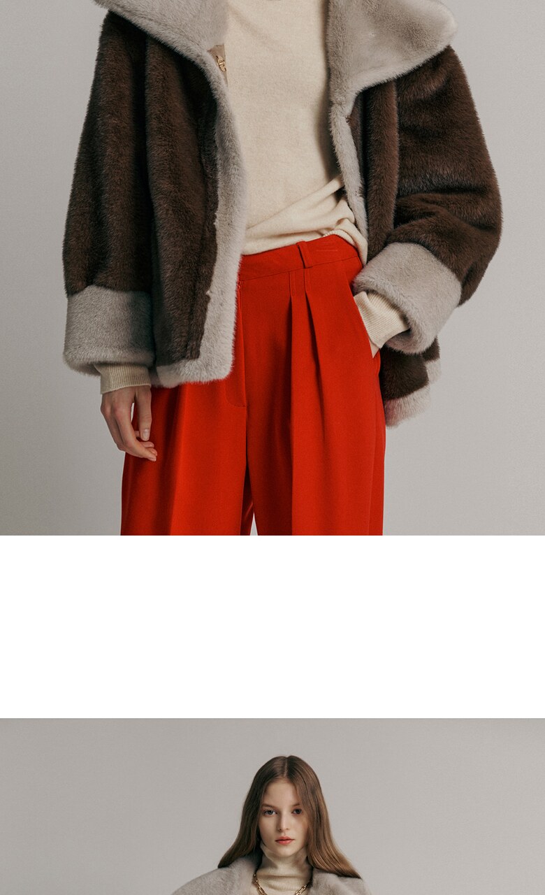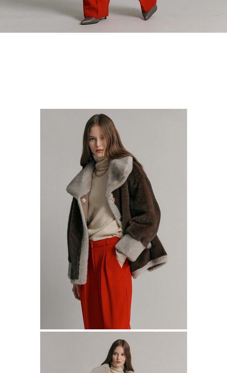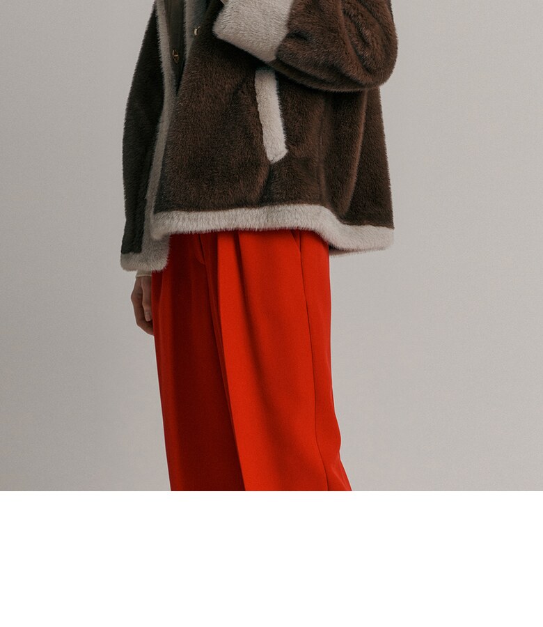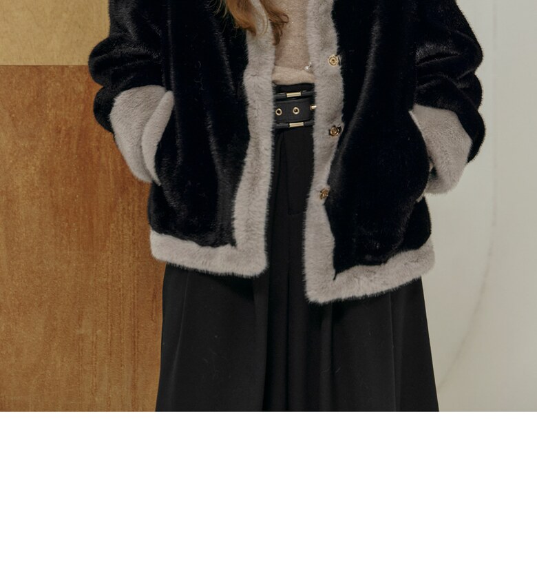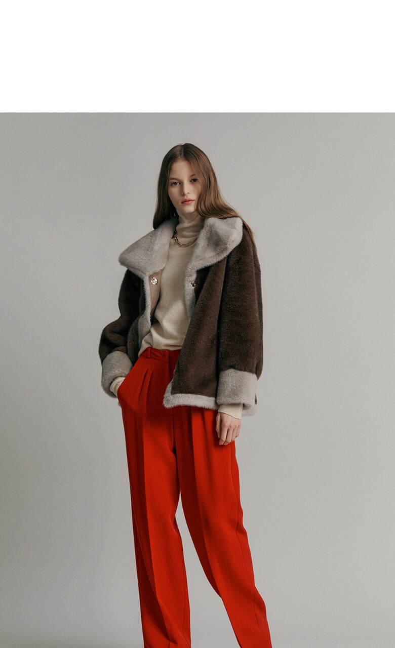와이드 카라 배색 페이크퍼 무스탕 자켓