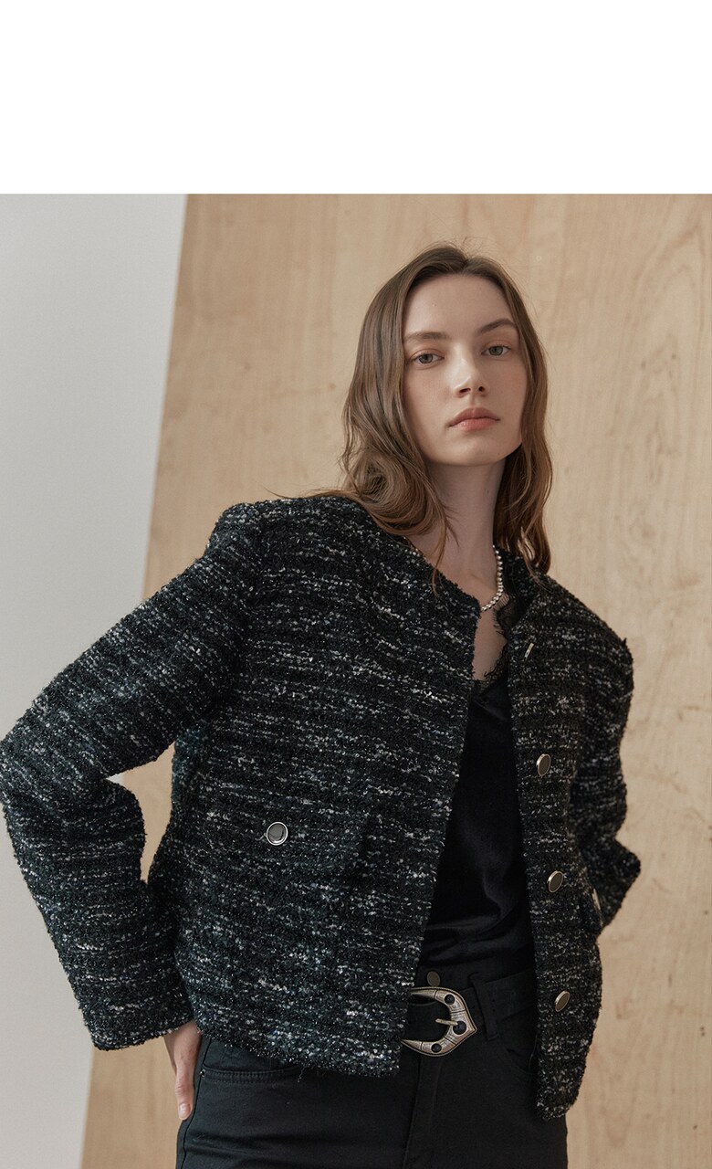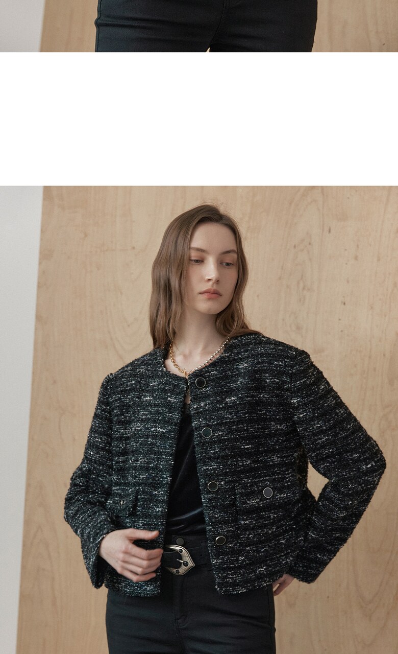 라운드 네크라인과 정갈한 포켓 디자인으로