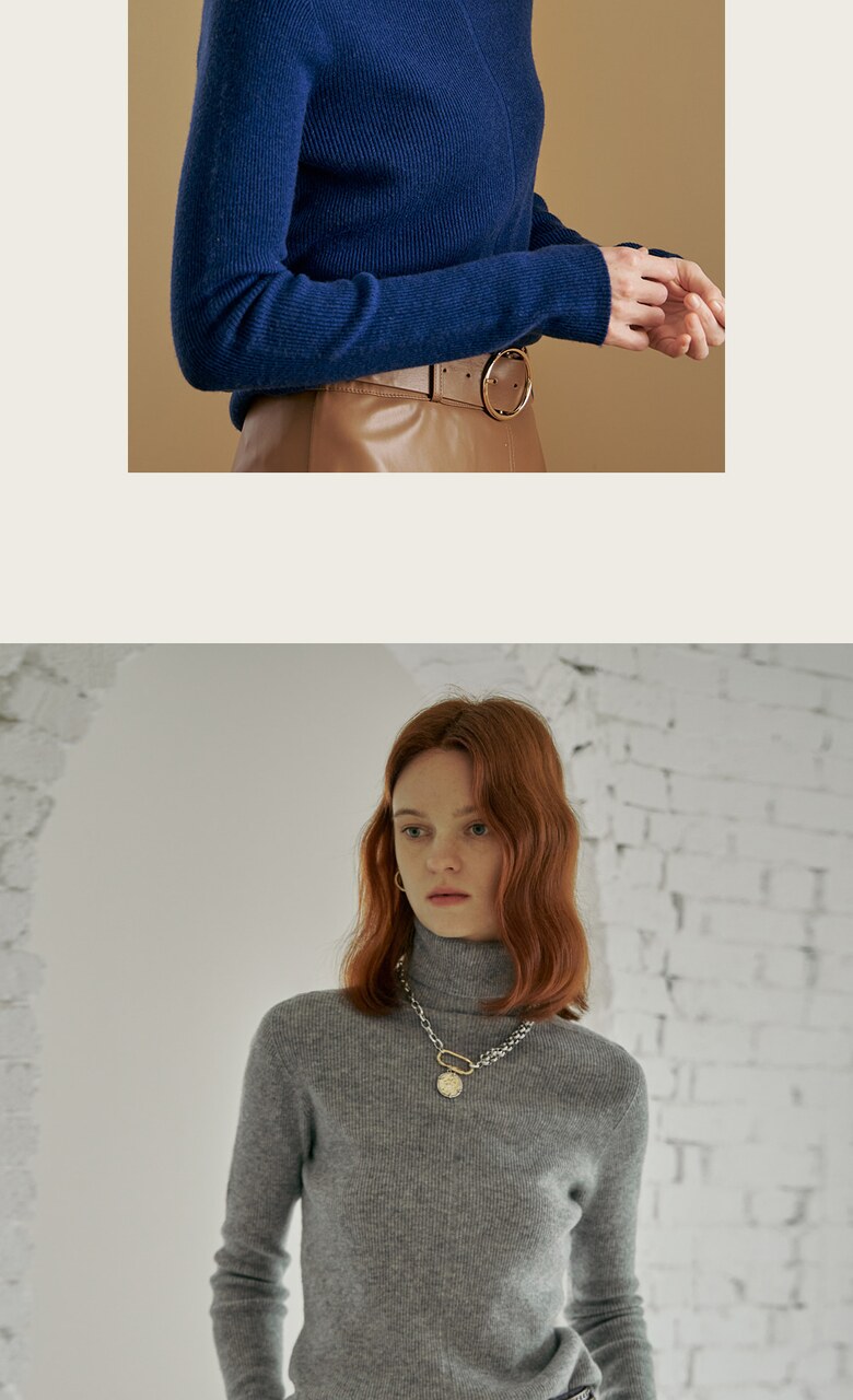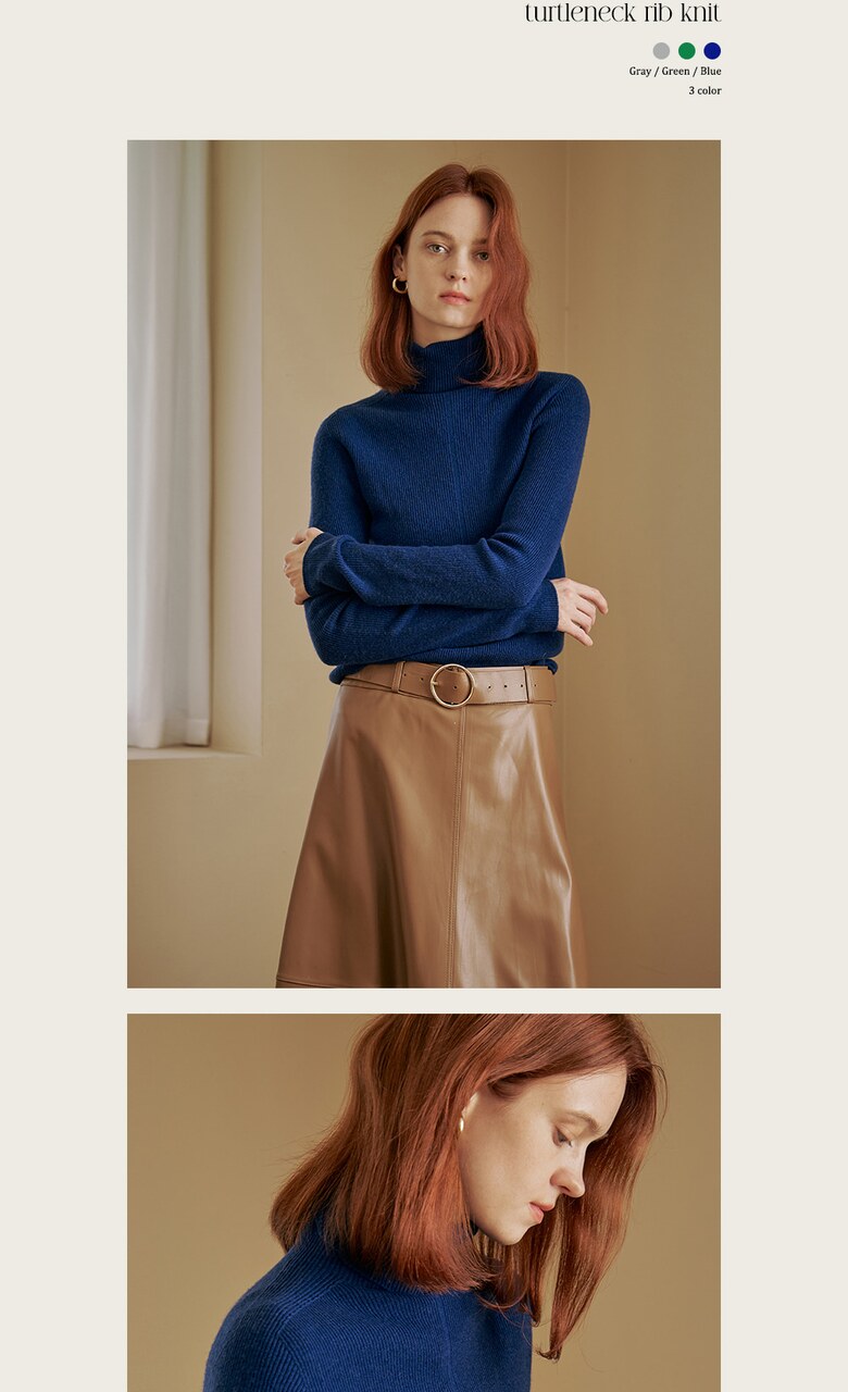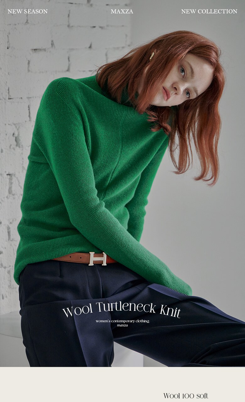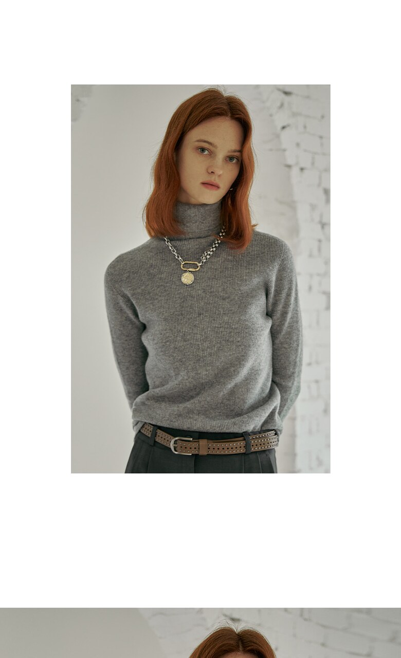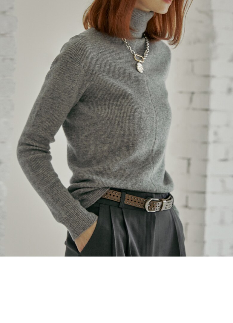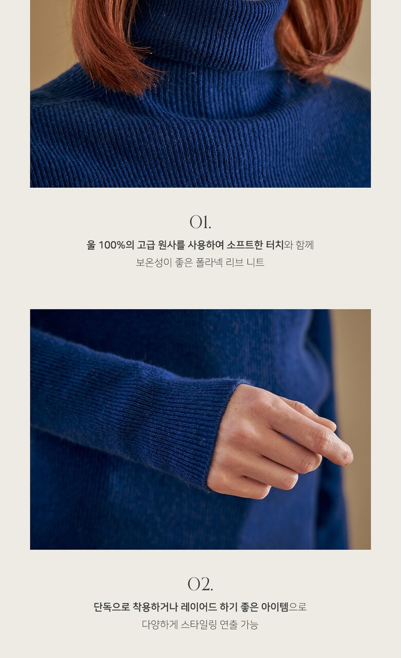 울100 소프트 폴라넥 리브 니트