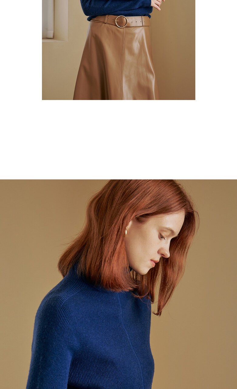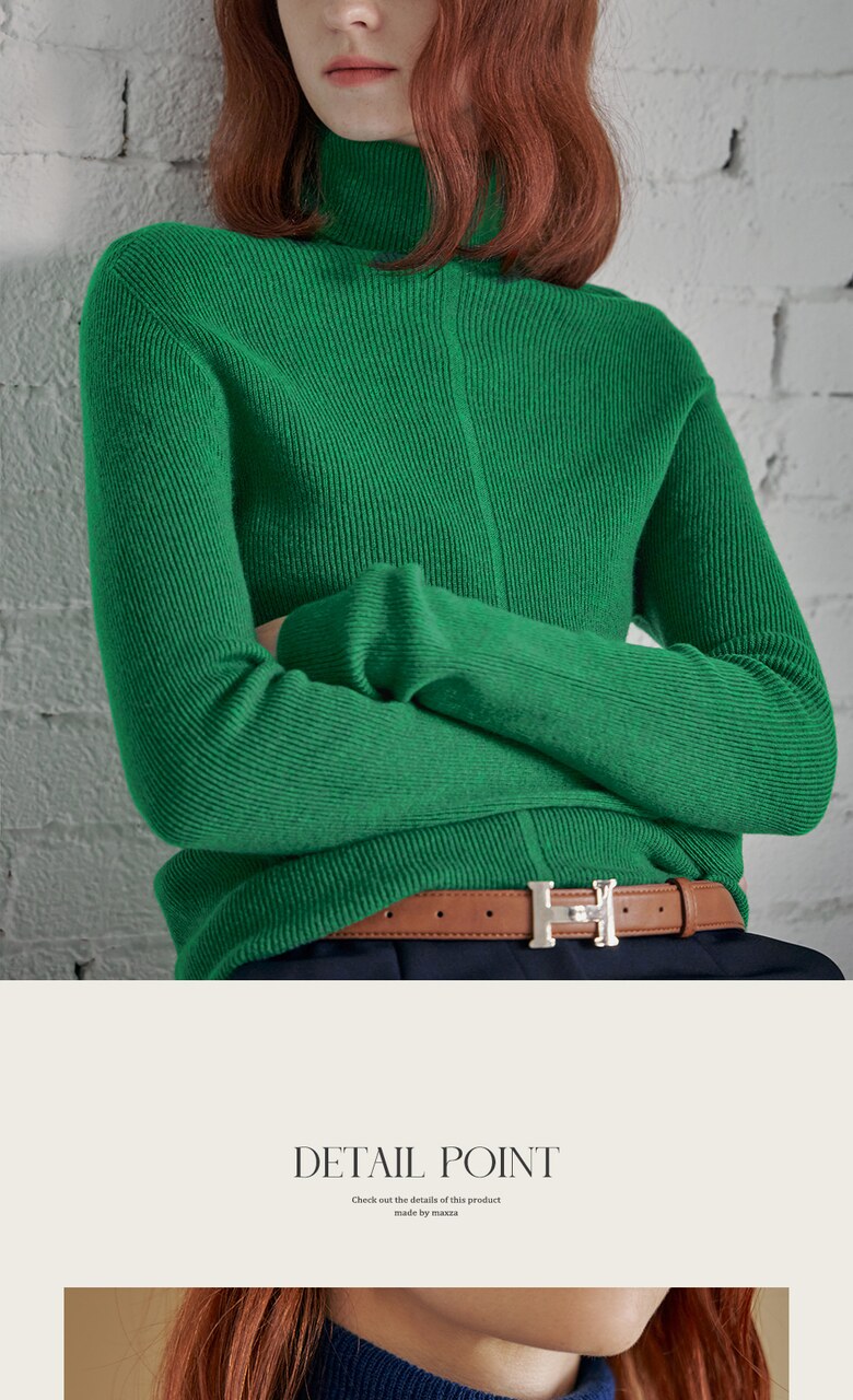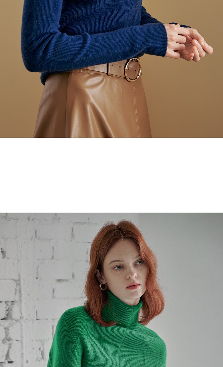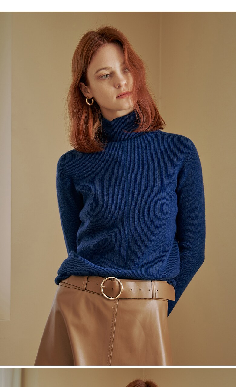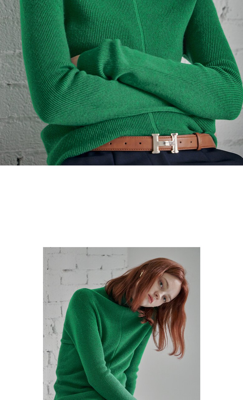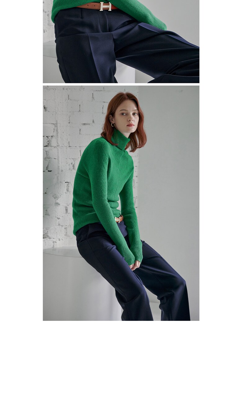 울100 소프트 폴라넥 리브 니트