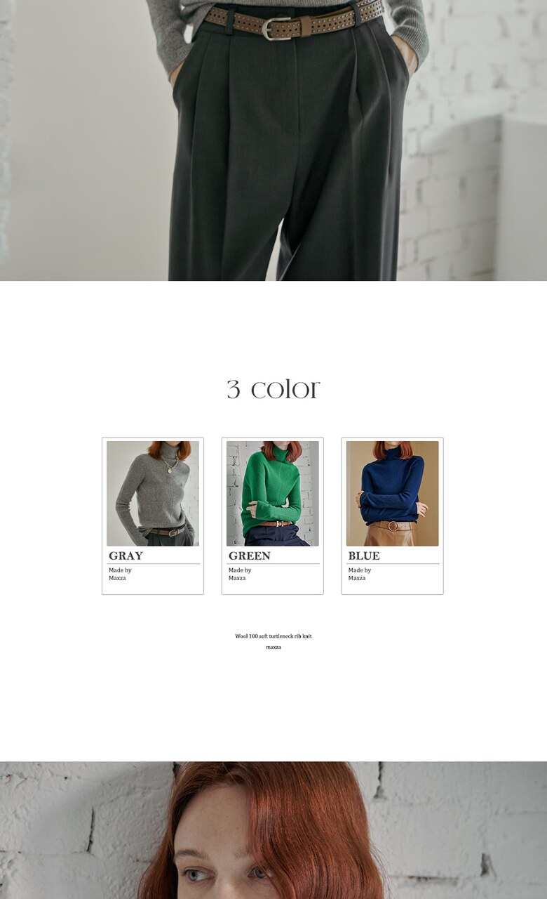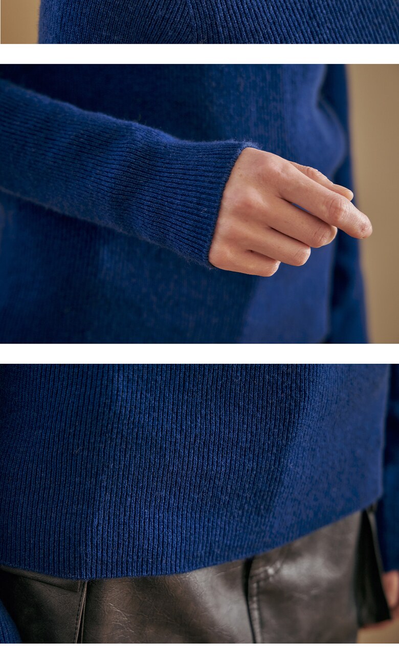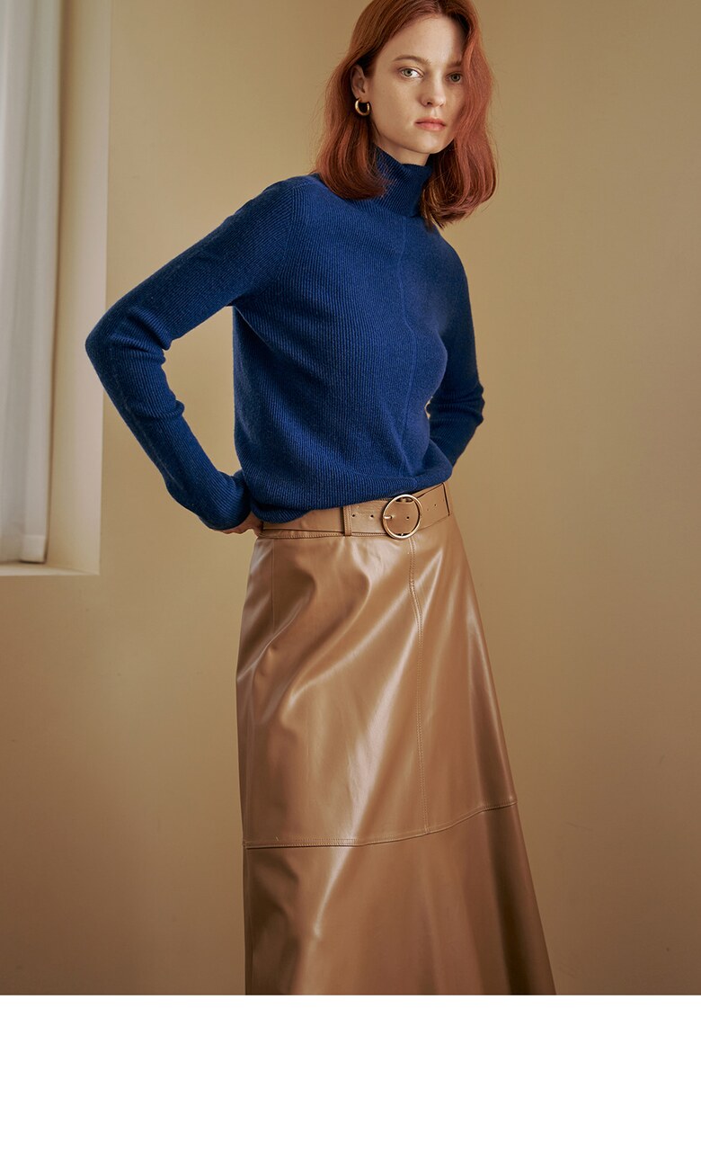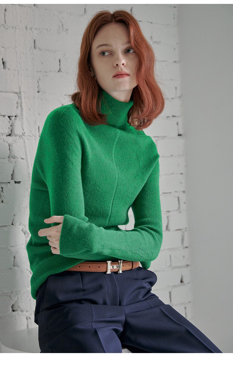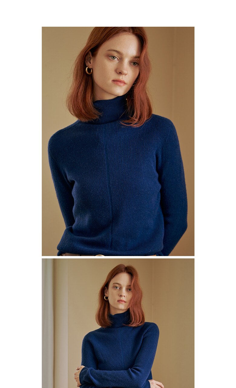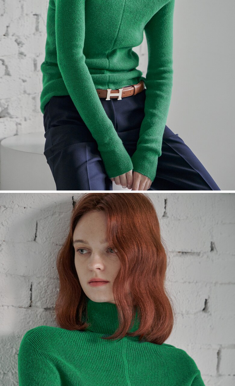 울100 소프트 폴라넥 리브 니트
