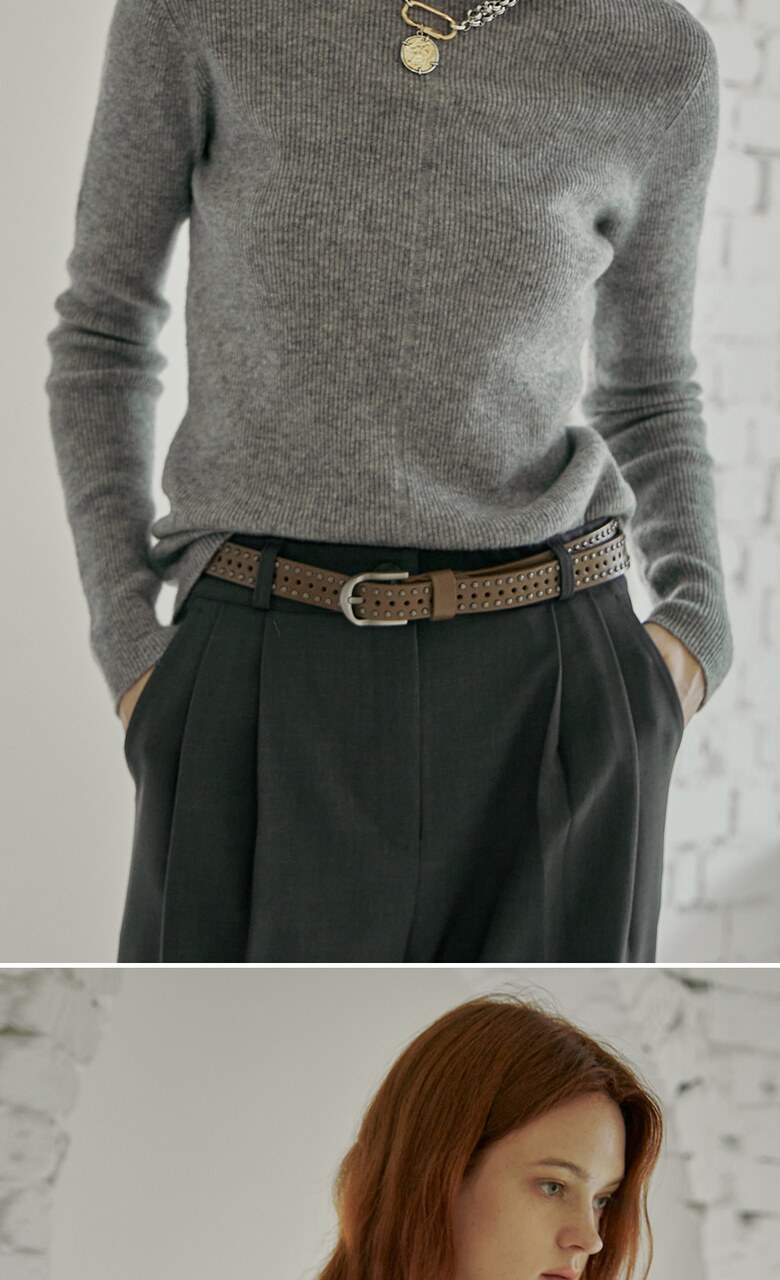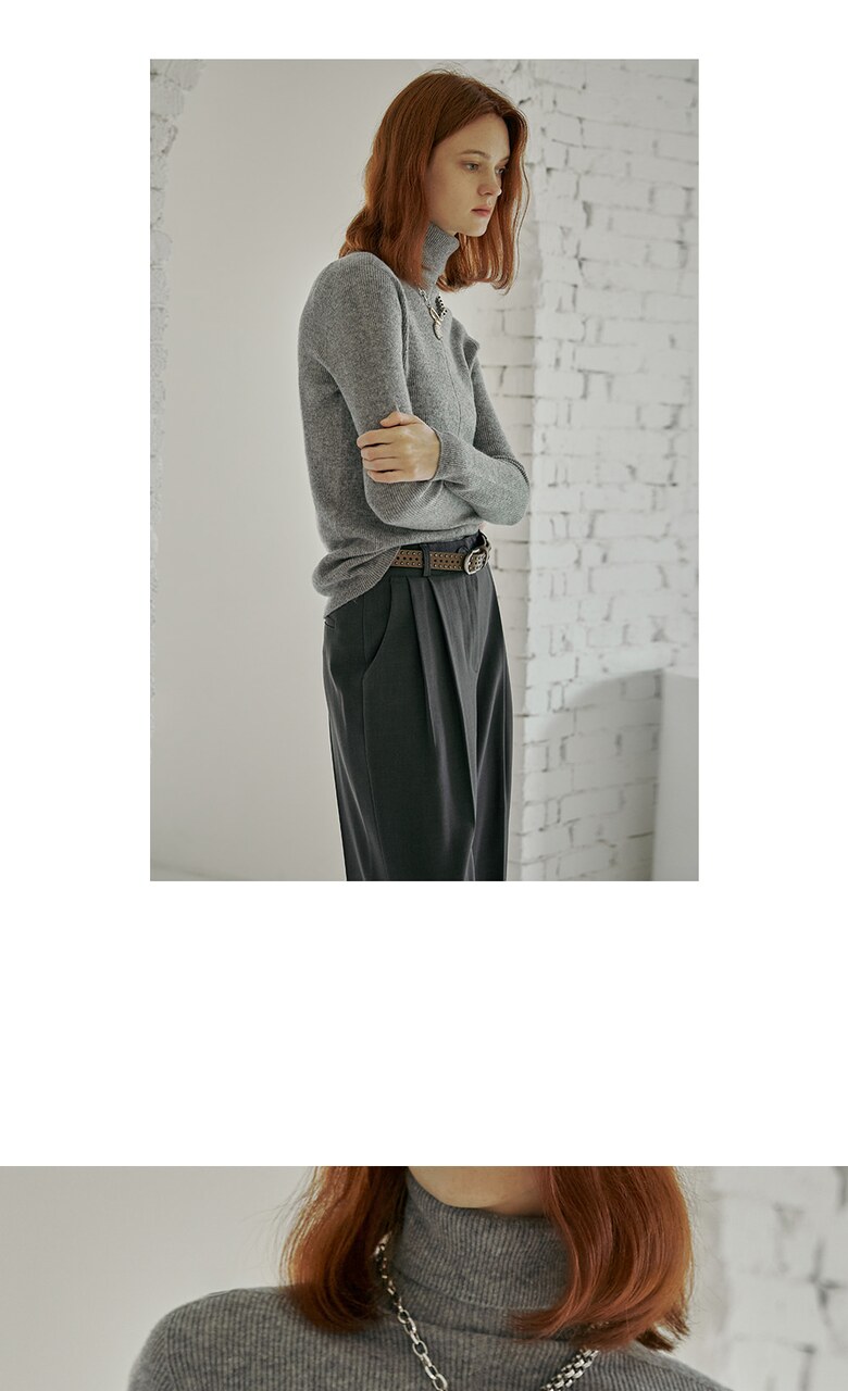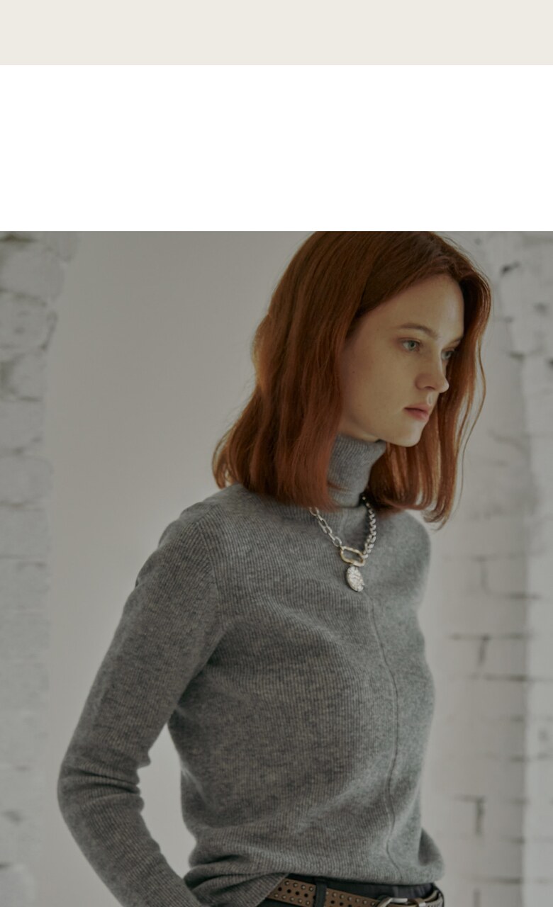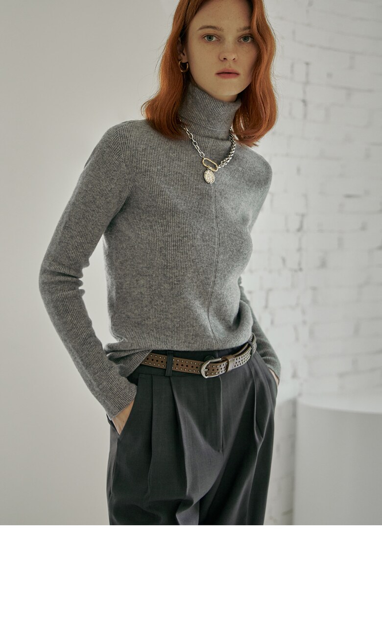 살짝 여유로운 핏감의 폴라넥 리브 니트입니다.