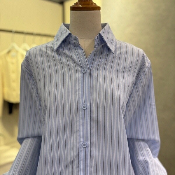 2025년 s/s?신상 나그랑 언발 스트라이프 박시 카라 셔츠 입니다.