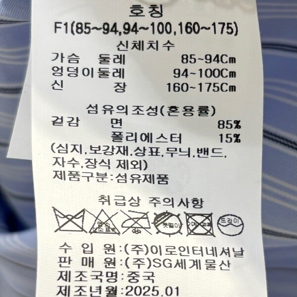 | 6. 세탁방법 및 취급시 주의사항 | 단독 드라이 하세요. 원단의 특성상 강한 마찰에 의한 보푸라기 등이 발생할수 있으니 착용에 주의바랍니다. |