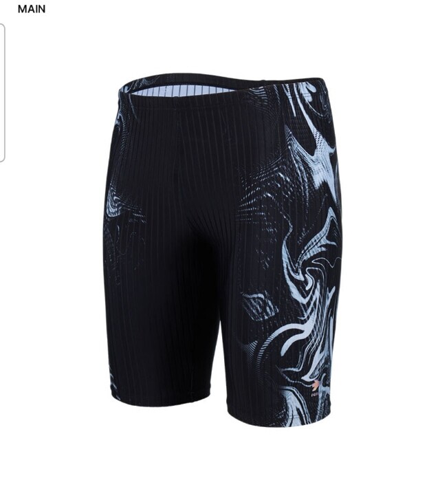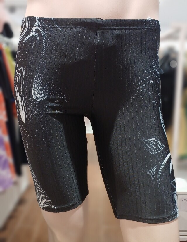 옆 라인 웨이브 프린트가 멋 스러운 남성 4부 실내수영복입니다.