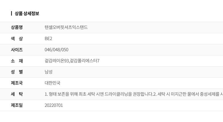| 6. 세탁방법 및 취급시 주의사항 | 상세설명 참조 |