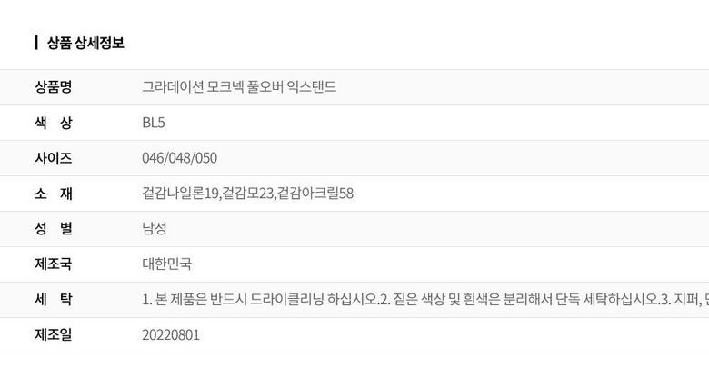 | 6. 세탁방법 및 취급시 주의사항 | 상세설명 참조 |