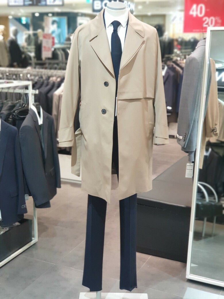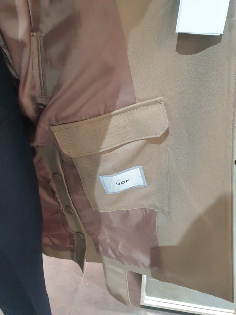 BON 22SS 베이지 울 혼방 더블 라펠 반더블 개버딘 트렌치코트 BN2SHA263BE