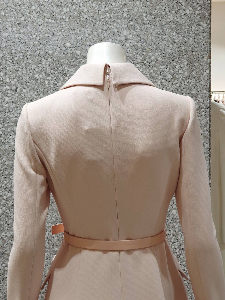 오픈칼라 디자인과 슬림한 허리 핏과,