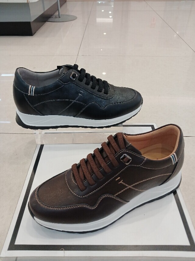굽높이 약5cm의 높이에 천연소가죽소재를 사용하여 제작된 남성 키높이 스니커즈입니다