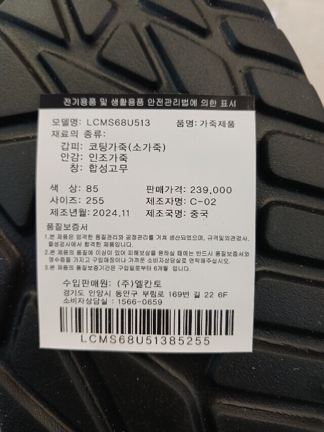 | 1. 제품 소재 (운동화인 경우에는 겉감, 안감을 구분하여 표시) | 상품상세참조 |
