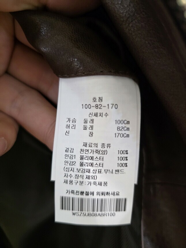 | 1. 제품 소재 (섬유의 조성 또는 혼용률을 백분율로 표시, 기능성인 경우 성적서 또는 허가서) | 겉감 : 천연가죽 (양가죽) 100% 안감 : 폴리에스터 100% (심지,보강 |