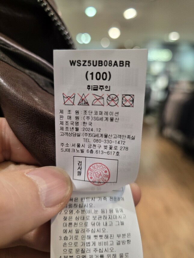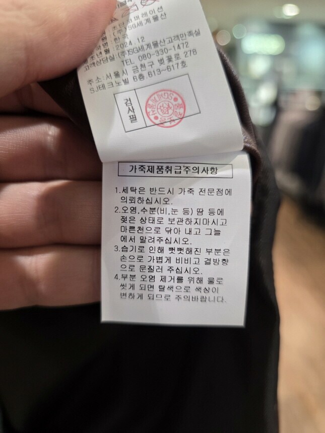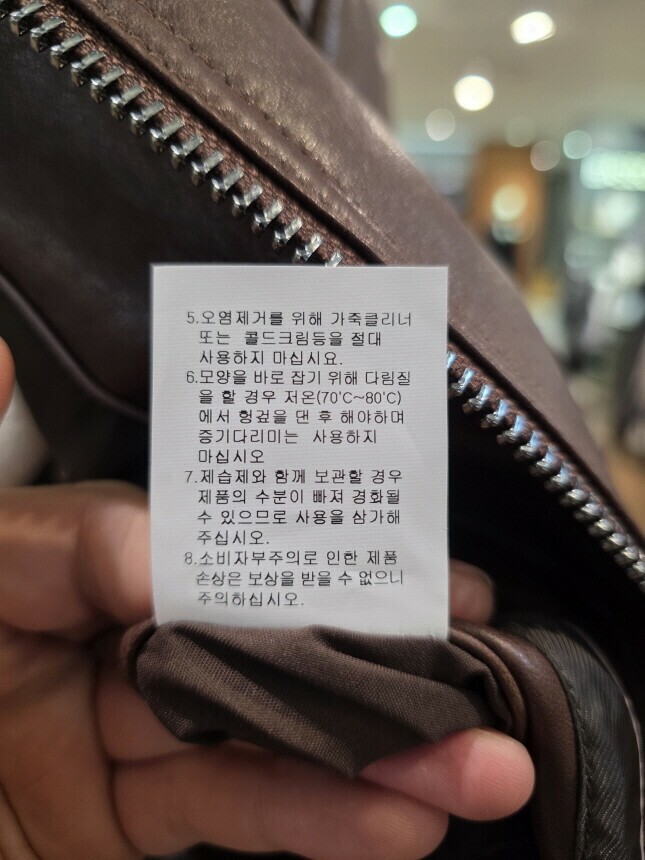 | 6. 세탁방법 및 취급시 주의사항 | 가죽 전문점에 의뢰하세요. |
