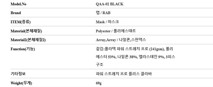 | 2. 소재 | 폴리에스테르 나일론 스판덱스 |