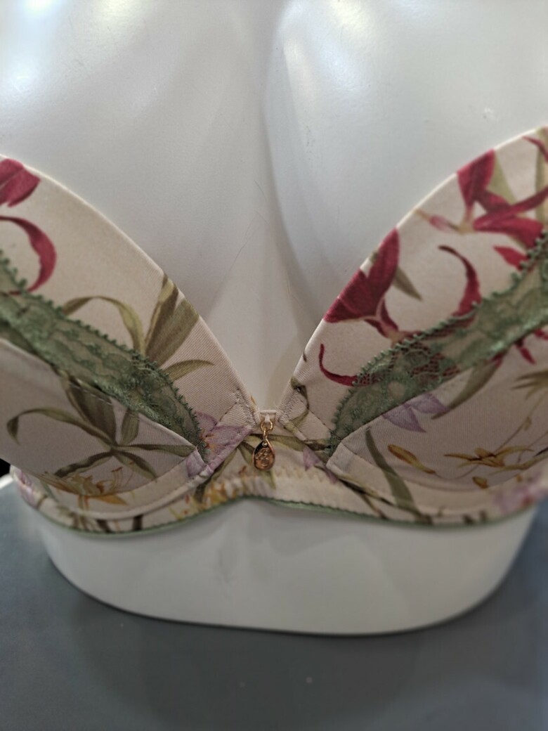 코지한 분위기의 플라워나염과 그린 포인트컬러의 레이스가 매치되어 화사하면서 세련된 느낌의 제품