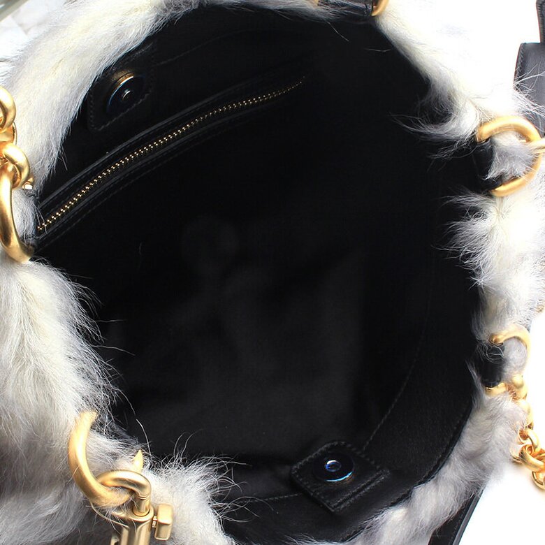 구름처럼 부드럽고 폭신한 투톤 에코 퍼 소재감과 볼드한 메탈 체인의 조화로 럭셔리함을 더한 백입니다.