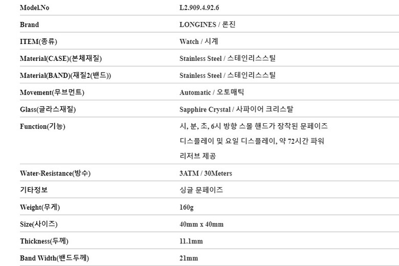 7-2. 시계 - 기능, 방수 등 상세정보참조