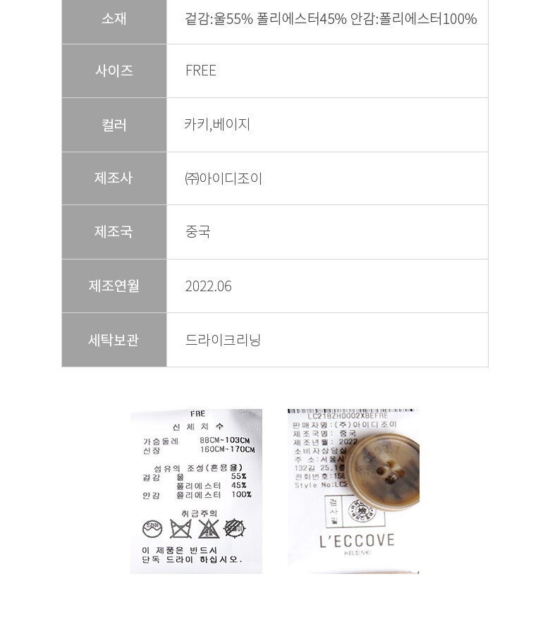 1. 제품 소재 (섬유의 조성 또는 혼용률을 백분율로 표시, 기능성인 경우 성적서 또는 허가서) | 상세페이지 참조 |