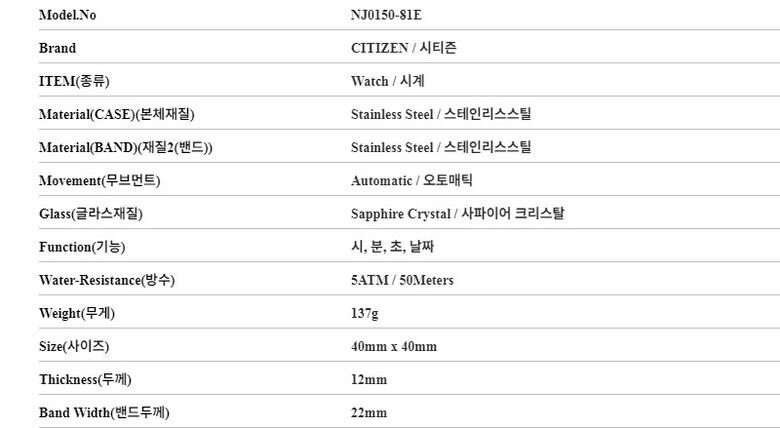시티즌 시계 NJ0150-81E 메카니컬 남성메탈시계 당일발송