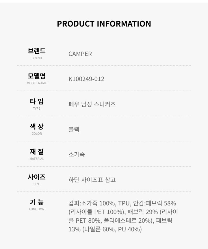 캠퍼 스니커즈 K100249-012 페우 카미 남자운동화 남자스니커즈 당일발송