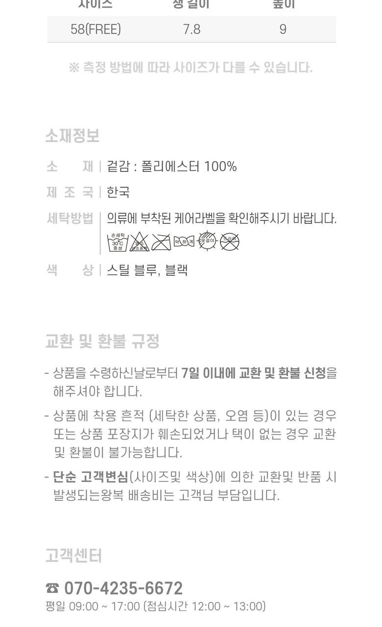 8. A/S 책임자와 전화번호 | 상품상세참조 |