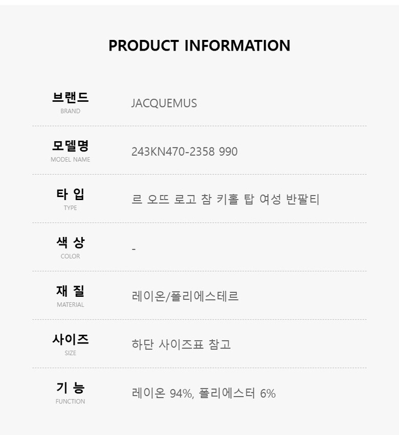 자크뮈스 반팔 243KN470-2358 990 르 오뜨 로고 참 키홀 탑 여성반팔티 당일발송