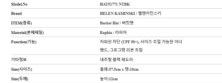 헬렌카민스키 모자 HAT51771 NTBK 파리다 내추럴 블랙 페도라 여성버킷햇 당일발송
