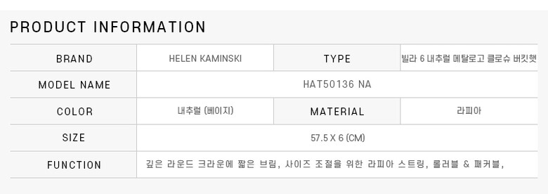 헬렌카민스키 버킷햇 HAT50136 NA 빌라 6 내추럴 메탈로고 클로슈 여성버킷햇 당일발송