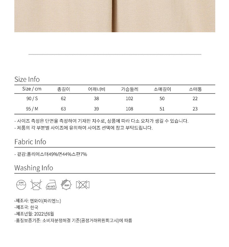 6. 세탁방법 및 취급시 주의사항 상세페이지및 라벨참조