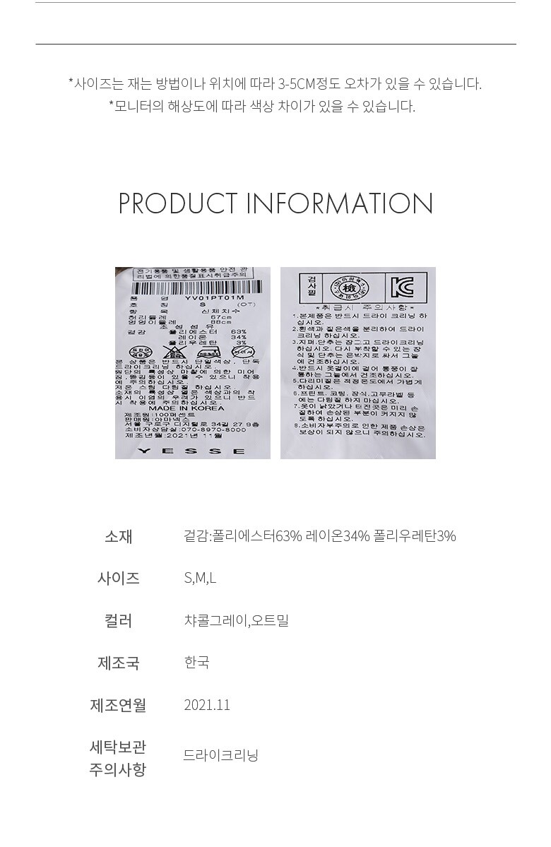 1. 제품 소재 (섬유의 조성 또는 혼용률을 백분율로 표시, 기능성인 경우 성적서 또는 허가서) 상세페이지 참조