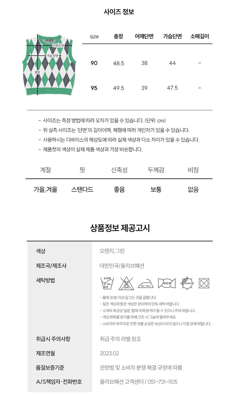 | 6. 세탁방법 및 취급시 주의사항 | 케어라벨 참조 |