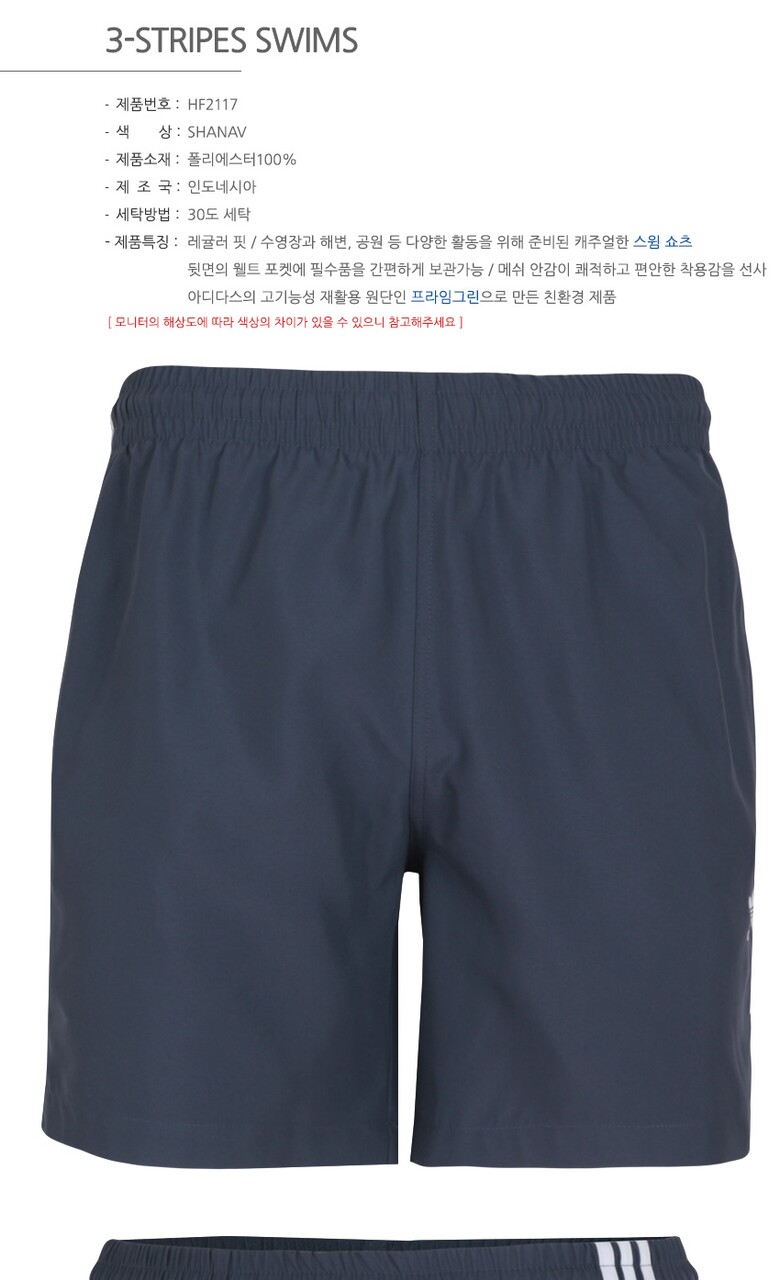 아디다스 남성 삼선 스윔팬츠 수영복 매장판 HF2117
