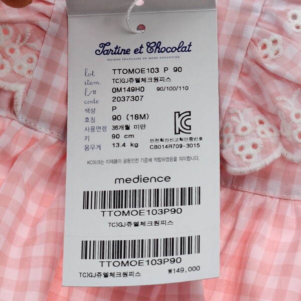 품명 및 모델명 : TC)GJ쥬엘체크원피스