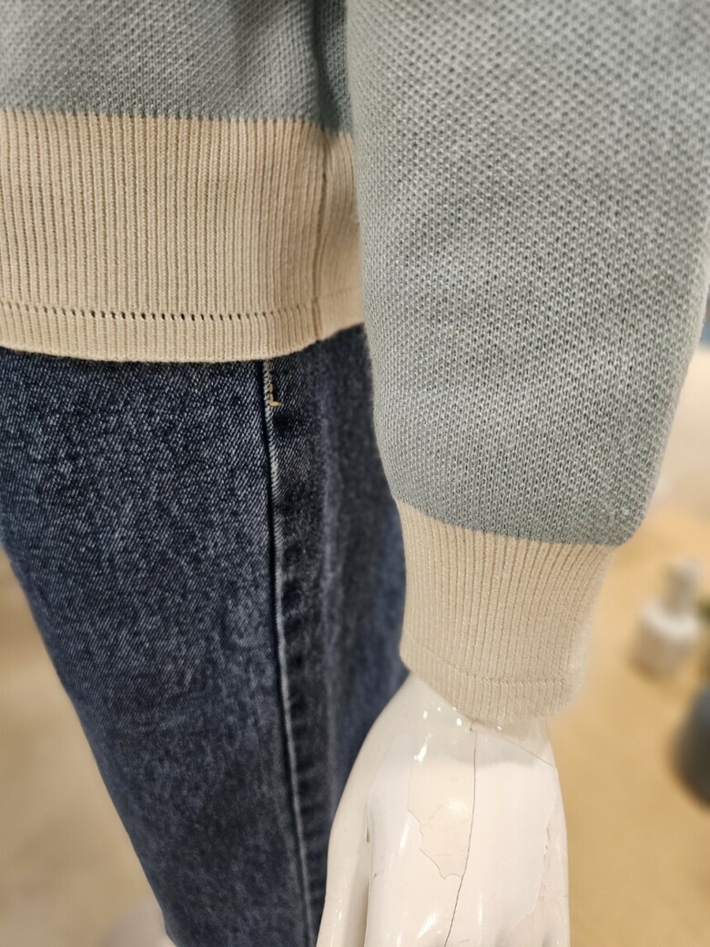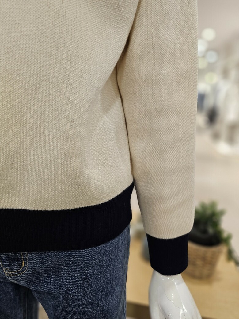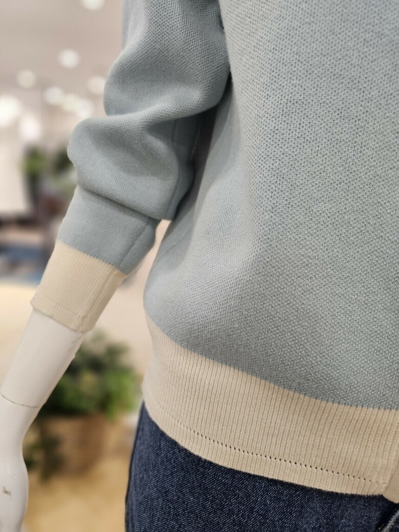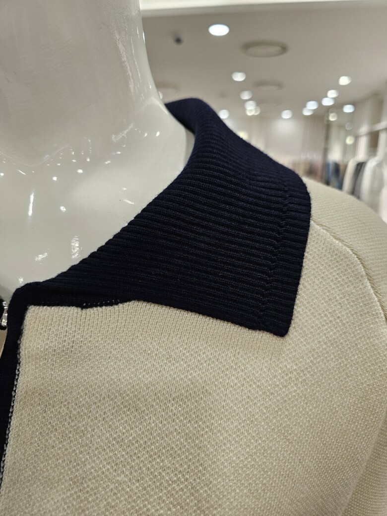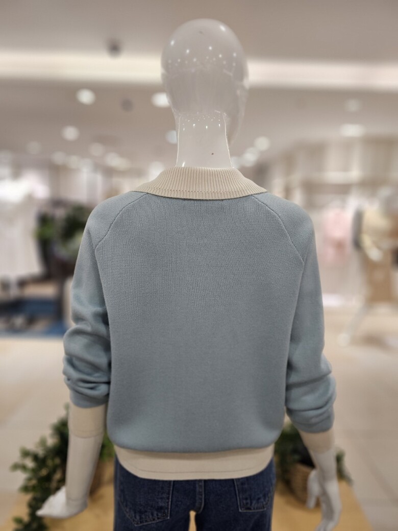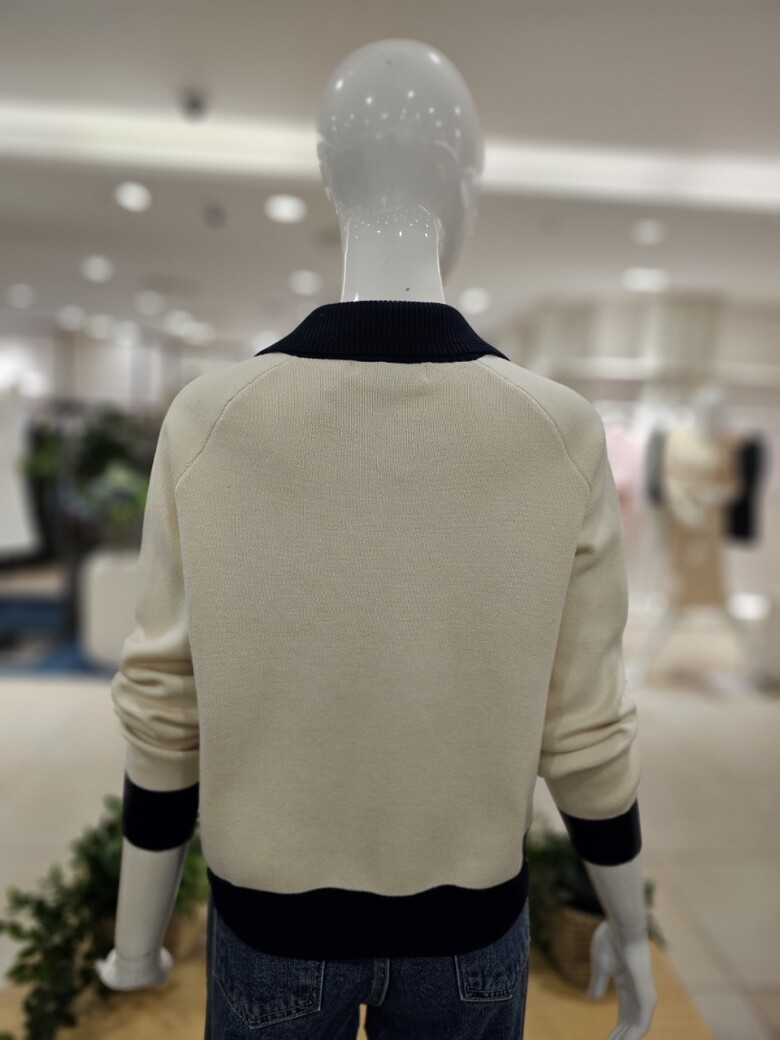 배색 집업 가디건