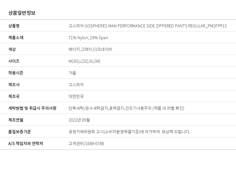 | 6. 세탁방법 및 취급시 주의사항 | 단독세탁/온수세탁금지,표백금지,건조기사용주의 (제품 내 라벨 확인) |