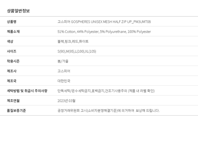 6. 세탁방법 및 취급시 주의사항 단독세탁/온수세탁금지,표백금지,건조기사용주의 (제품 내 라벨 확인)