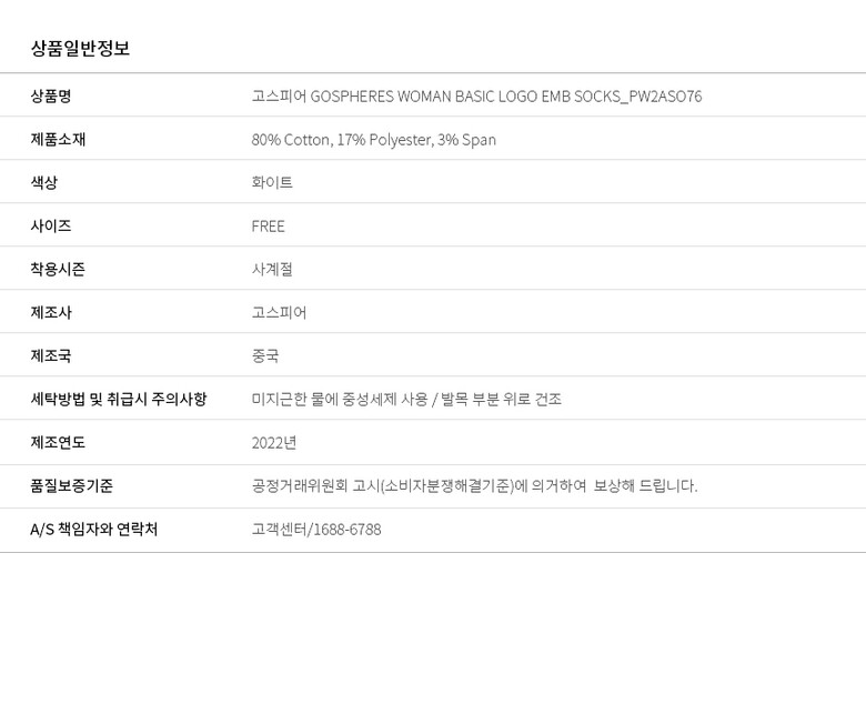 고스피어 GOSPHERES WOMAN BASIC LOGO EMB SOCKS_PW2ASO76