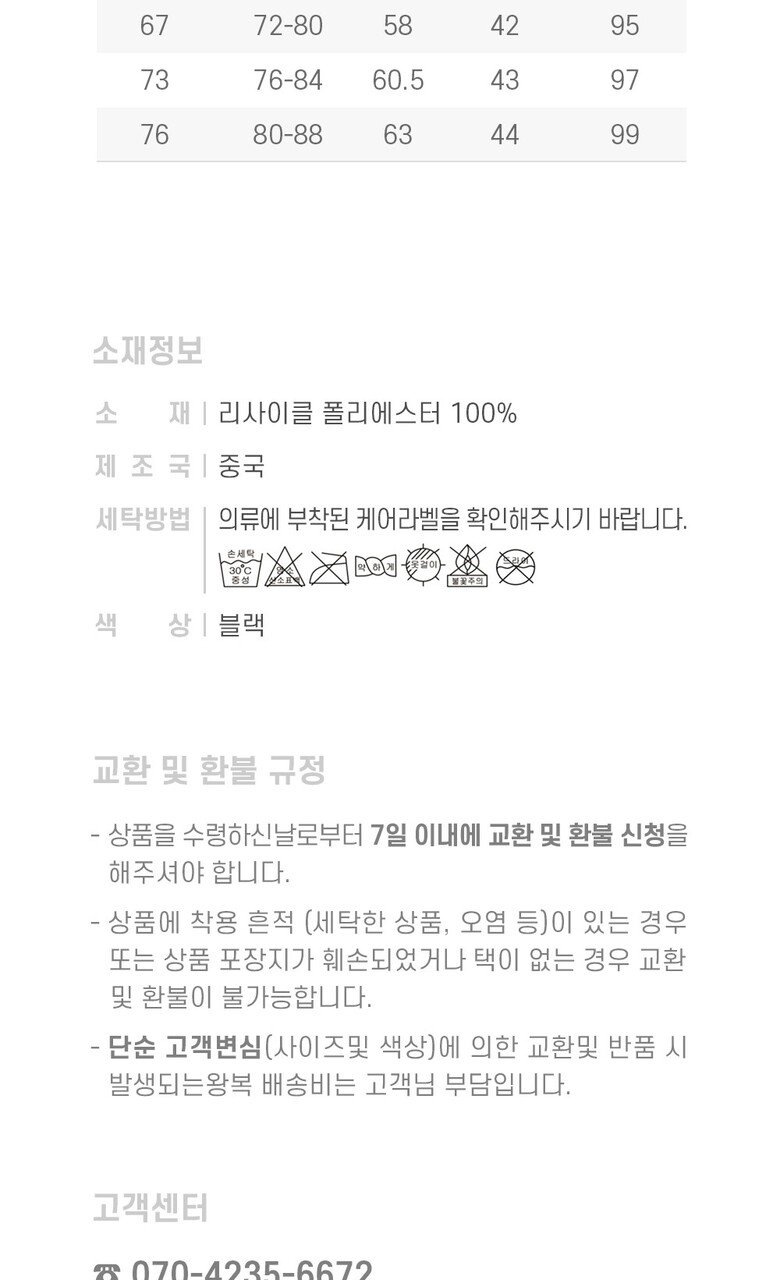 • 처음 배송된 상품상태와 다를 경우(세탁/착용 후 외출하신 경우) 반품이 불가합니다.