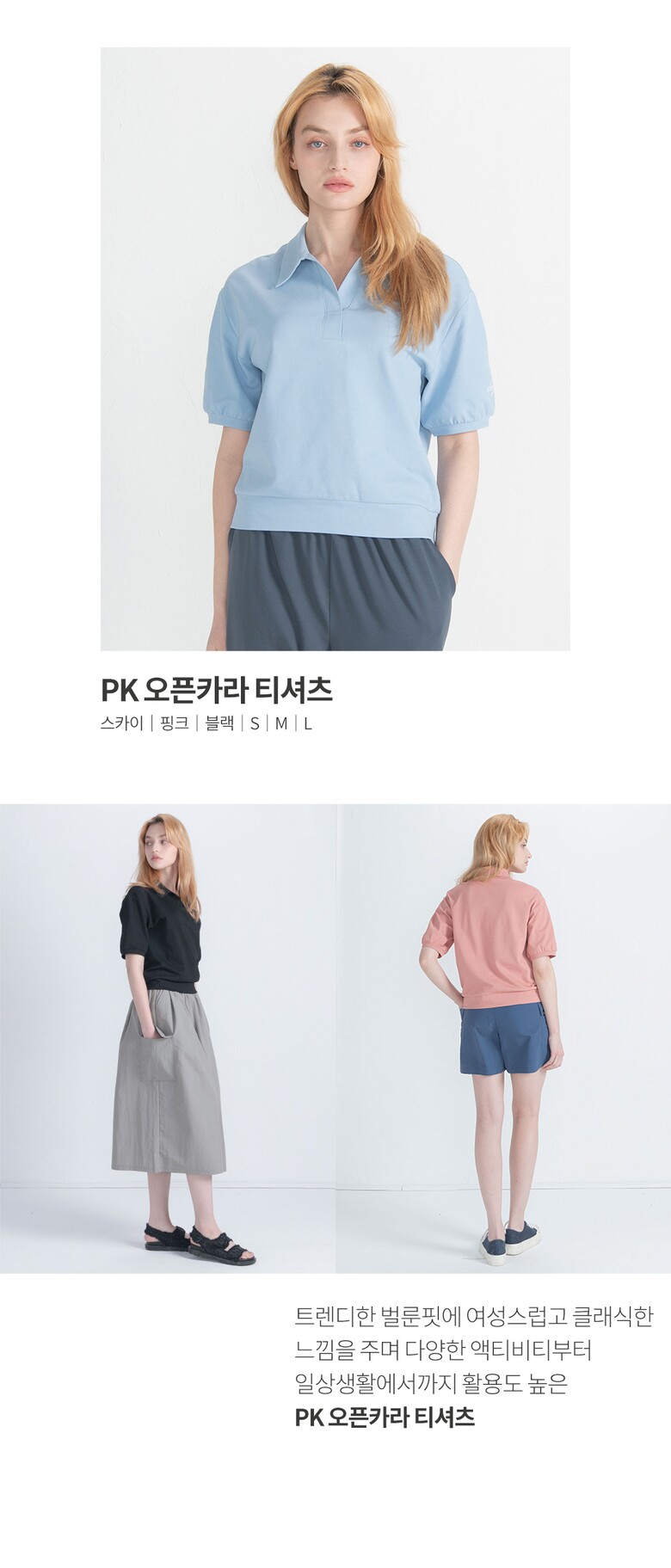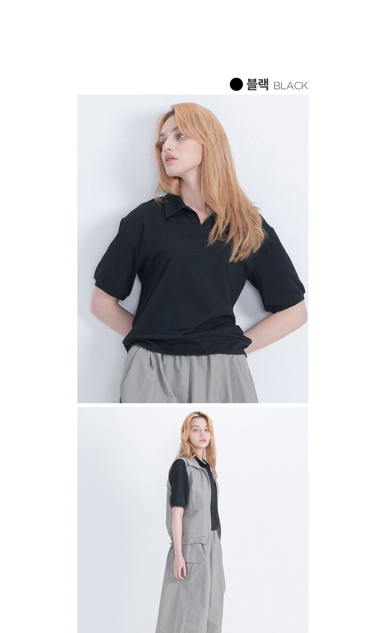 뒤란 PK 오픈 카라 벌룬핏 티셔츠 DTF4S-3064 3colors