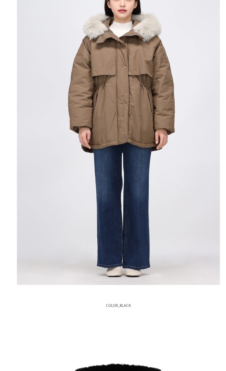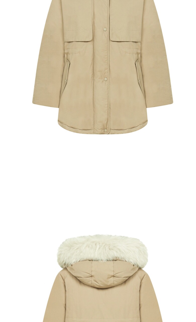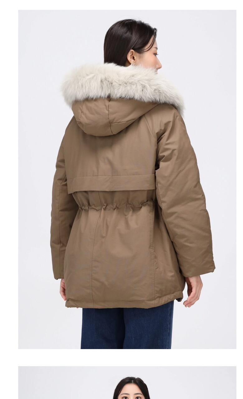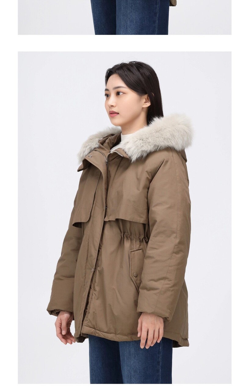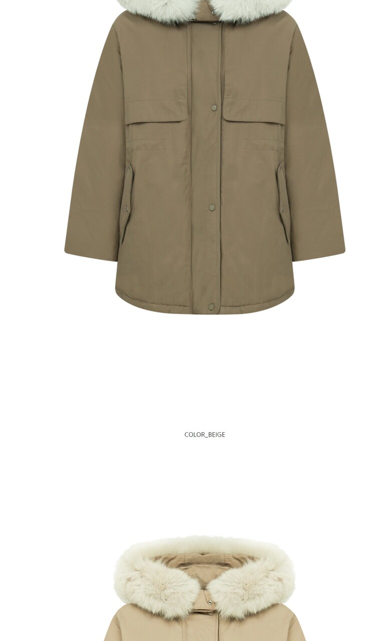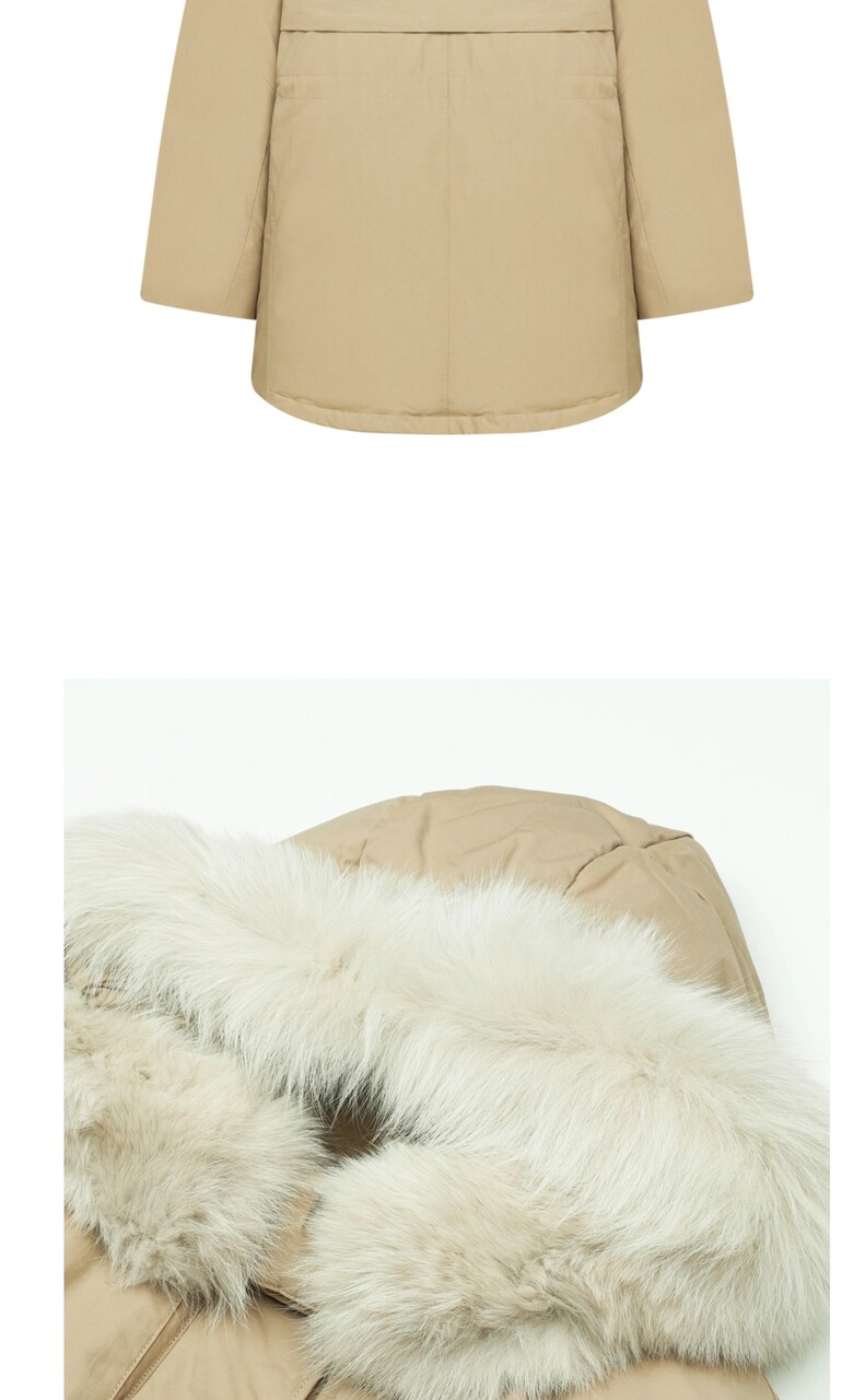 폭스퍼 후드로 고급스러운 포인트를 주었습니다.