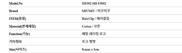 미우미우 헤어클립 5IF092 068 F0002 로고 벨벳 여성헤어클립 당일발송