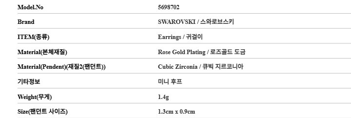 | 7. 주요 사양 | 로즈골드 도금 귀걸이 |