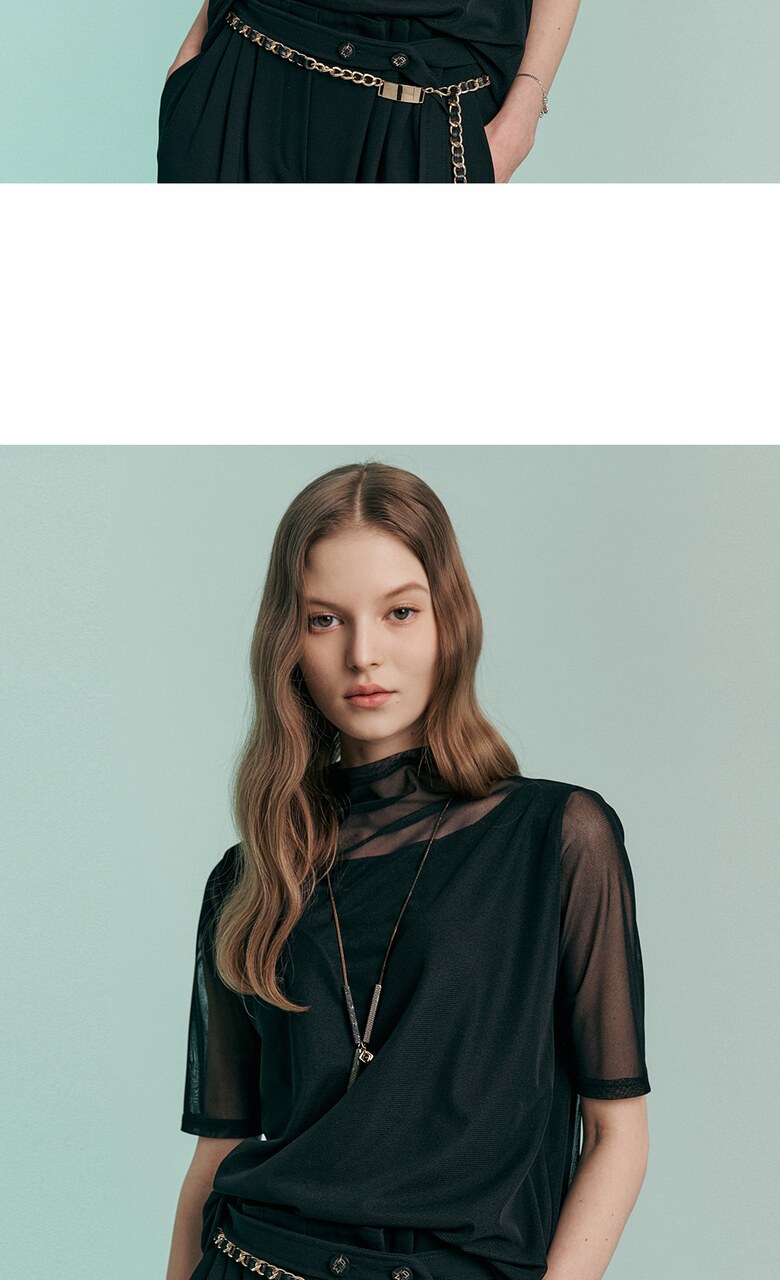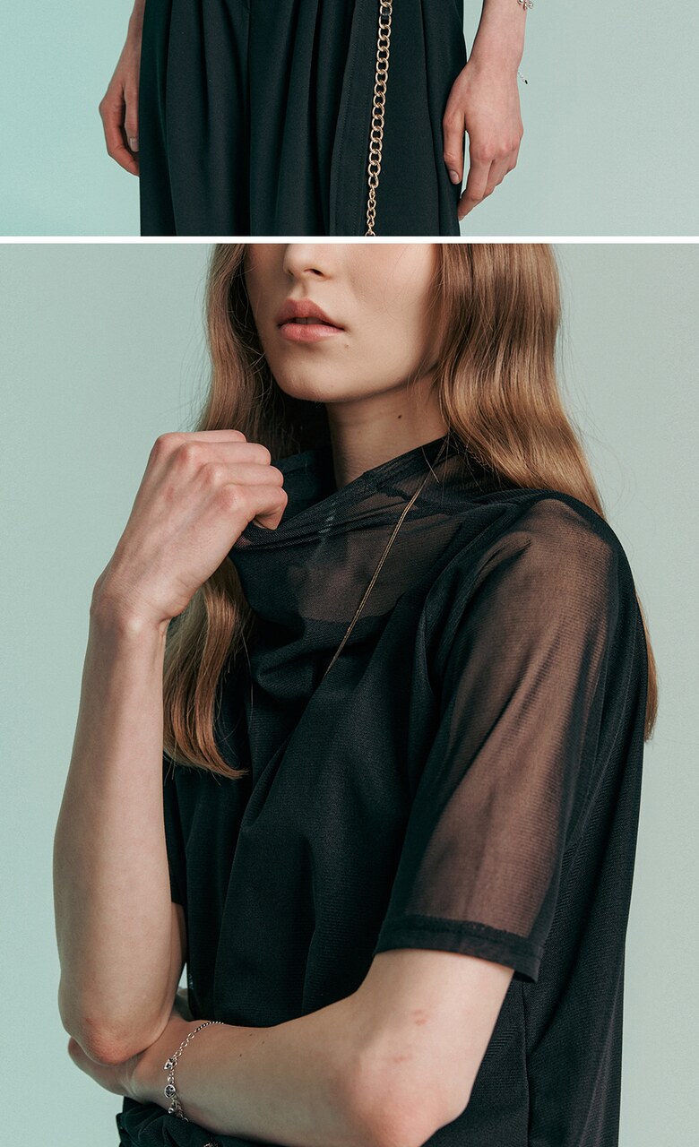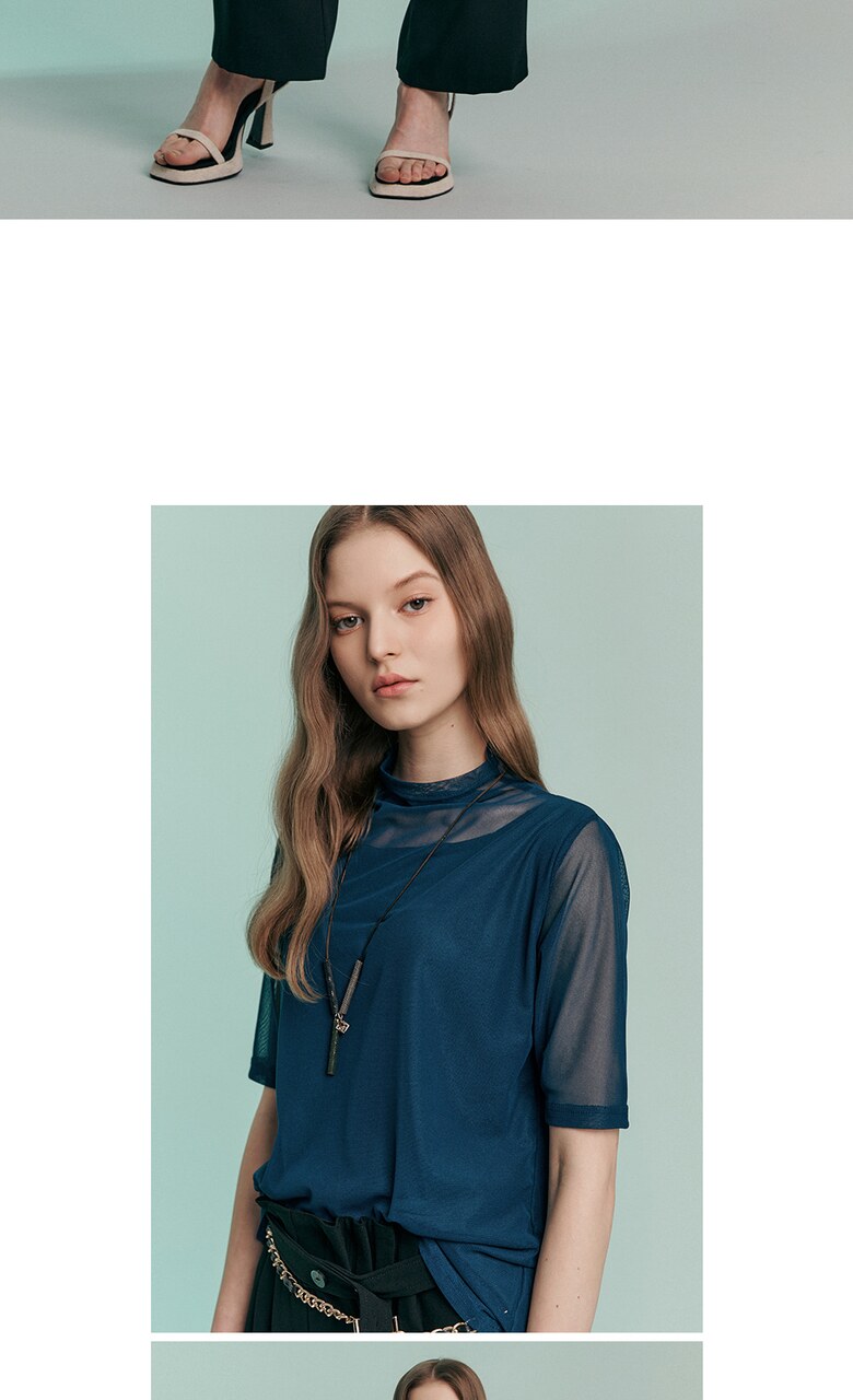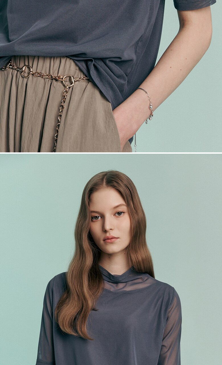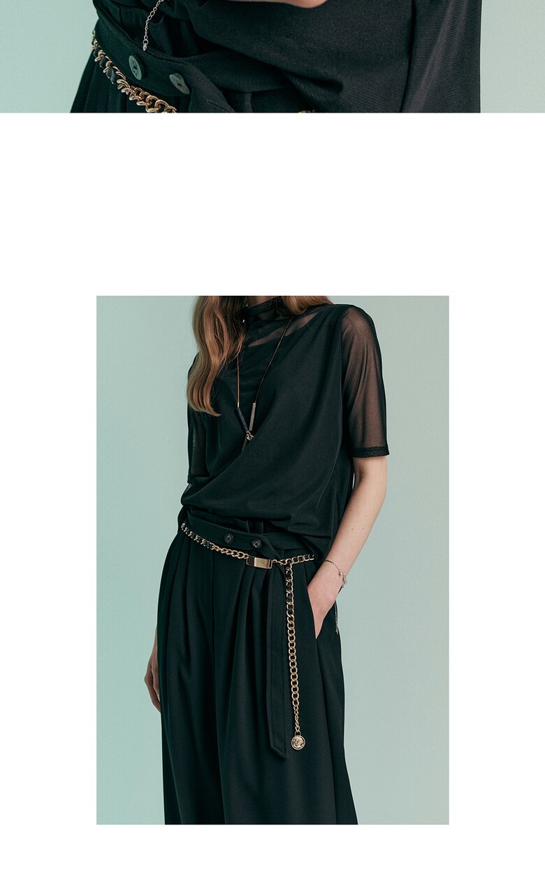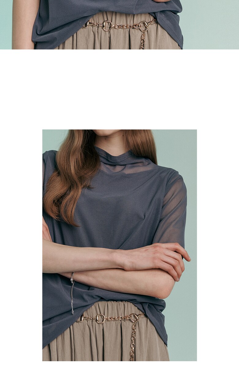 반하이넥 시스루 레이어드 반팔 티셔츠