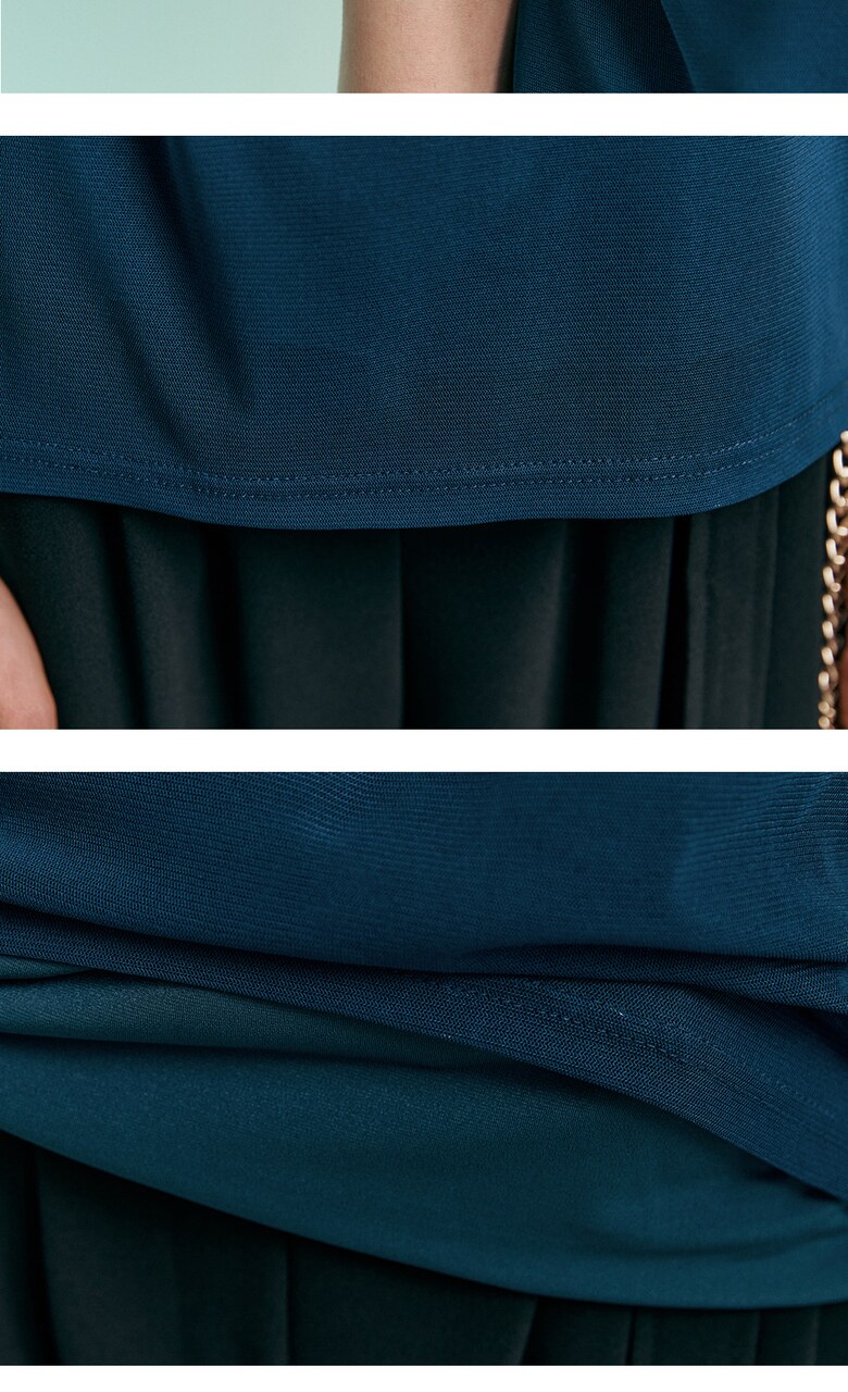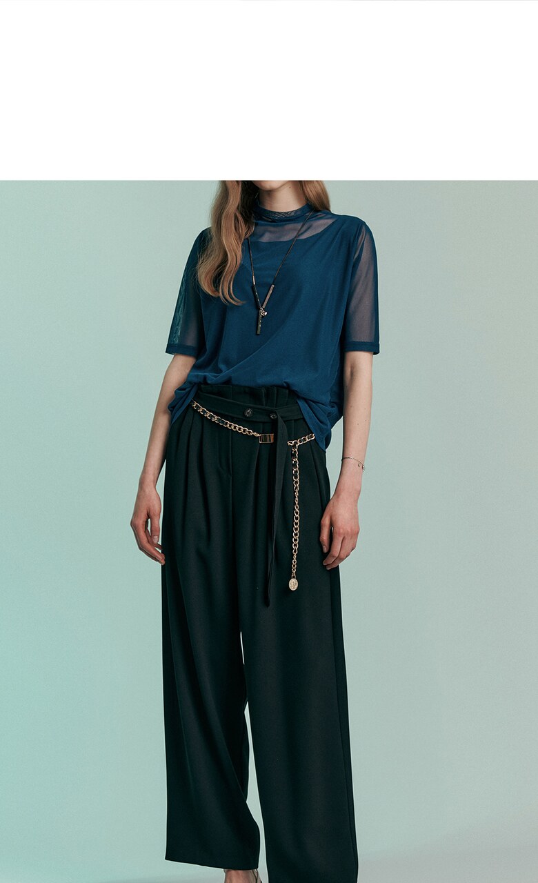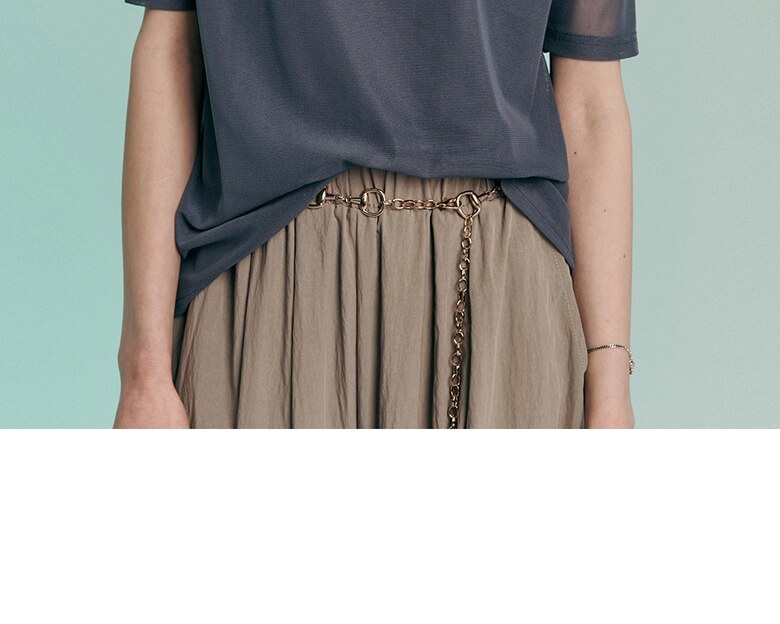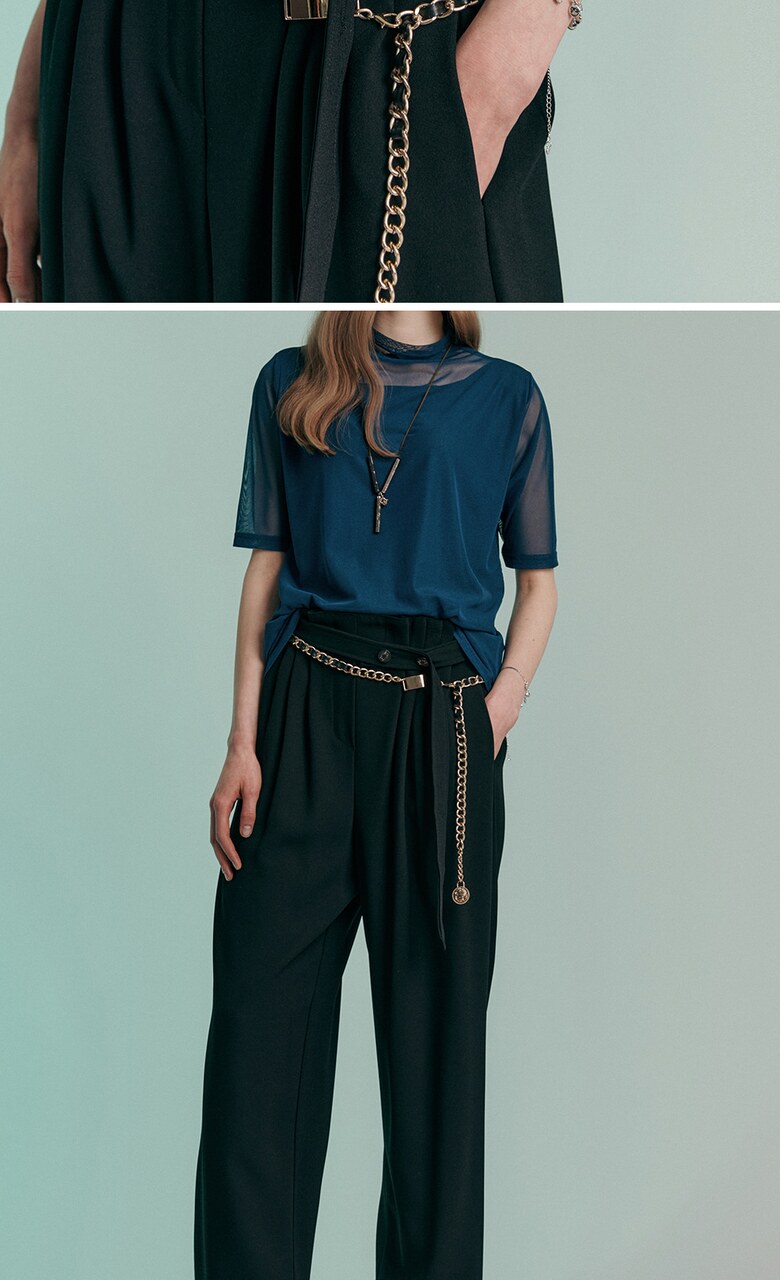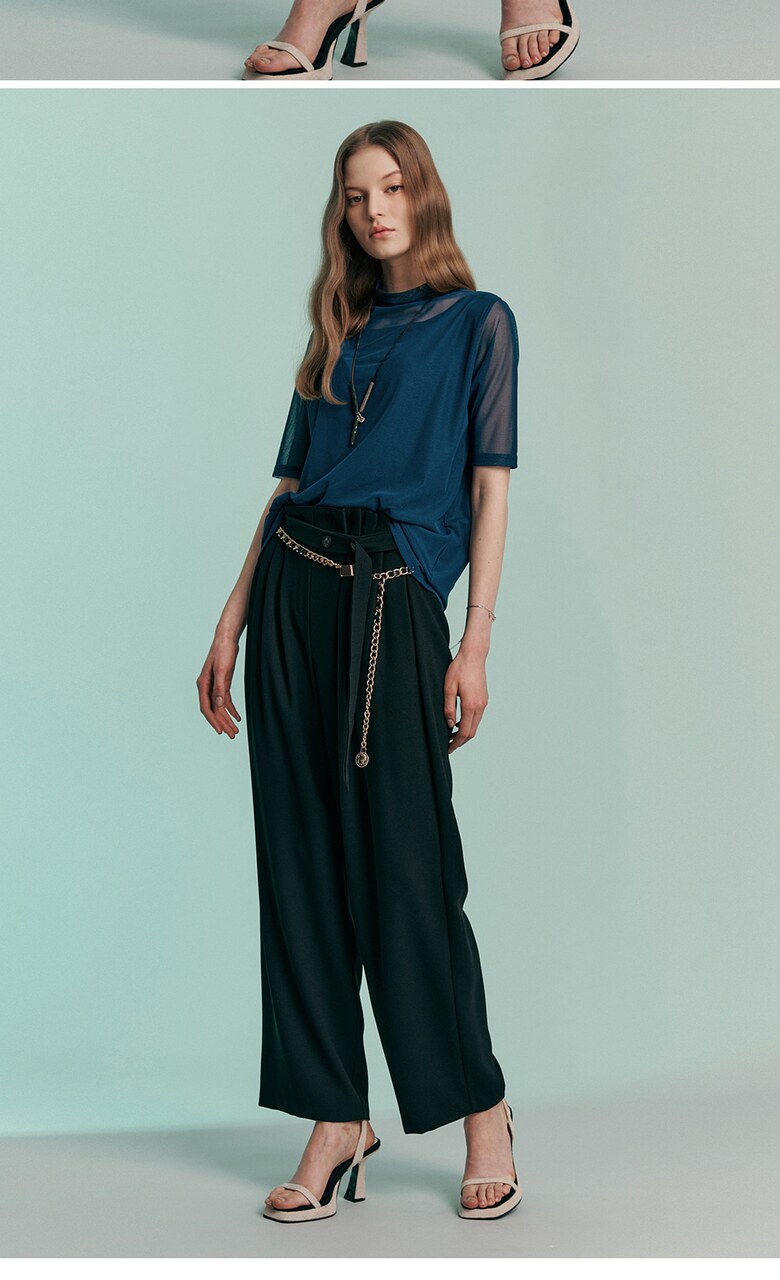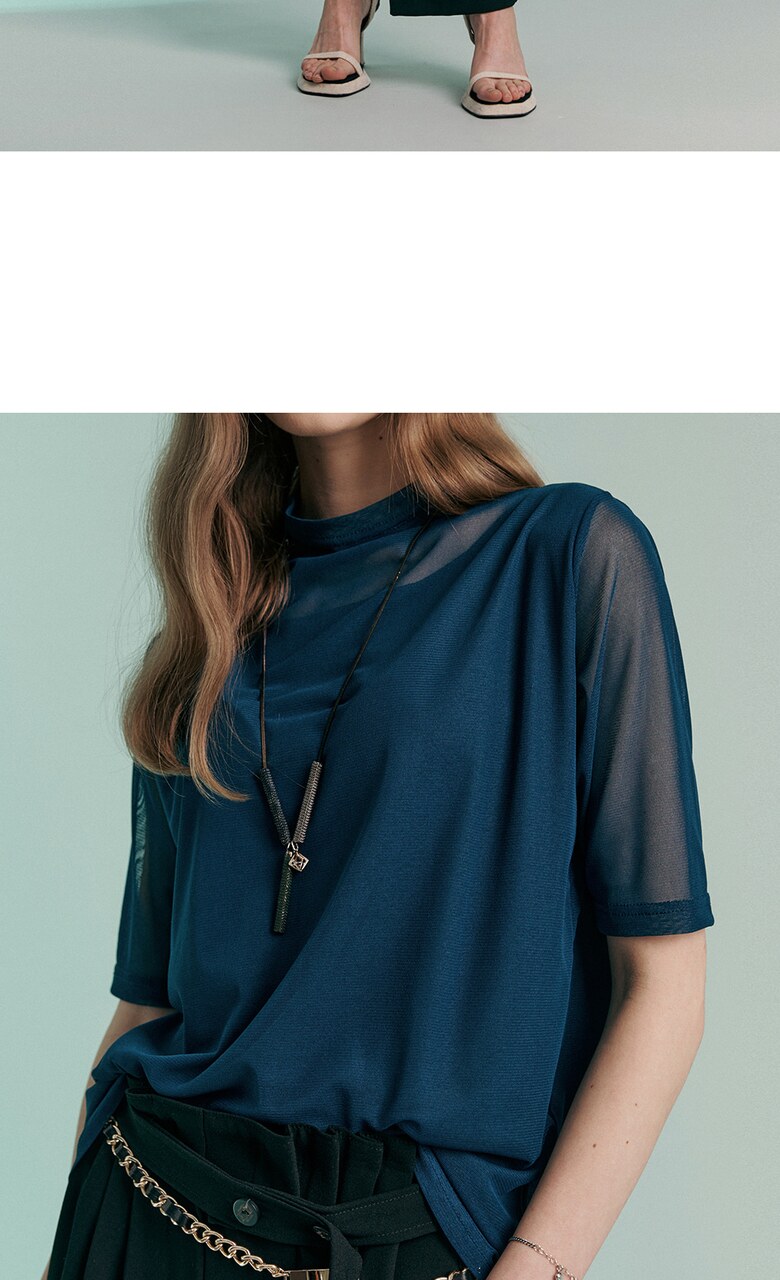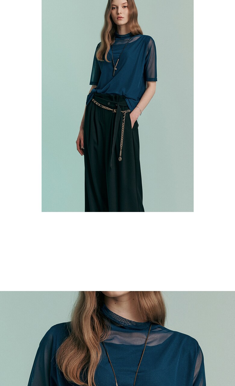 반하이넥 시스루 레이어드 반팔 티셔츠
