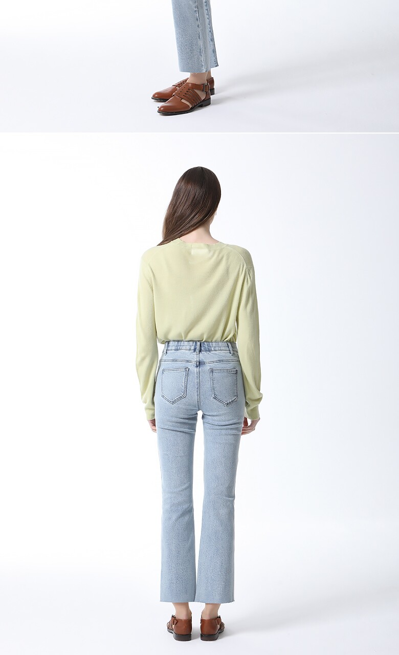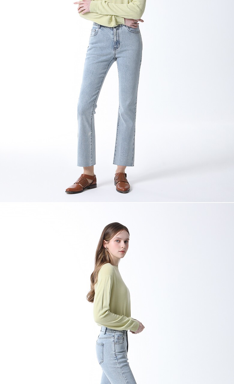 컷팅 헴과 자연스러운 워싱감이 어우러진 슬림 핏 데님 팬츠입니다. 폴리에스터는 내구성이 뛰어나기 때문에 오랜 시간 동안 모양이 유지됩니다. 셔츠나 블라우스와 함께 매치하여 모던하고 세련된 룩을 연출할 수 있습니다.