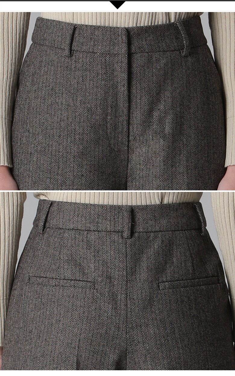 울 블렌드 헤링본 패턴 원단으로 고급스러움을 더한 5부 팬츠입니다.