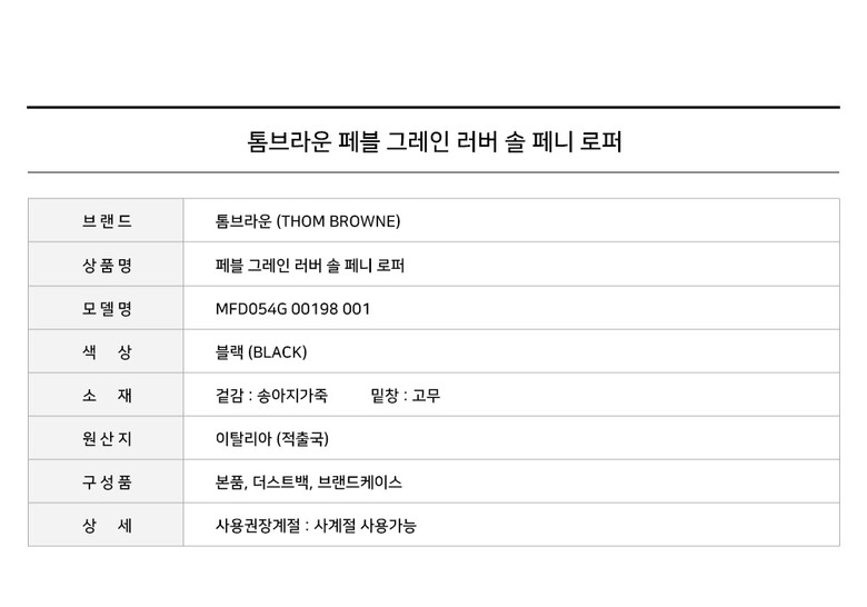 [명품] 25SS 톰브라운 페블 그레인 러버 솔 페니 로퍼 블랙 MFD054G 00198 001