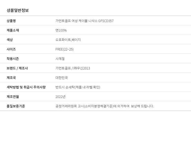 가먼트골프 여성 케이블 니삭스 GFSCD357