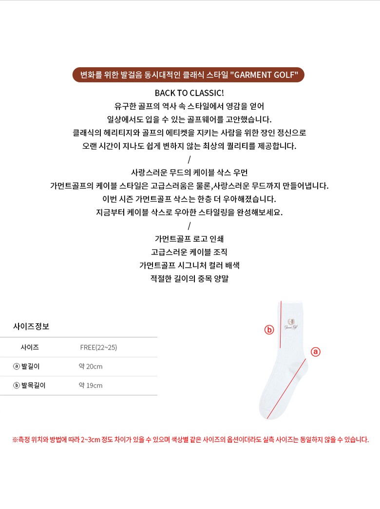 가먼트골프 여성 케이블 크루 삭스 GFSCD352