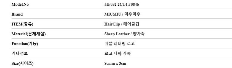 미우미우 5IF092 2CT4 F0846 로고 나파 가죽 헤어클립